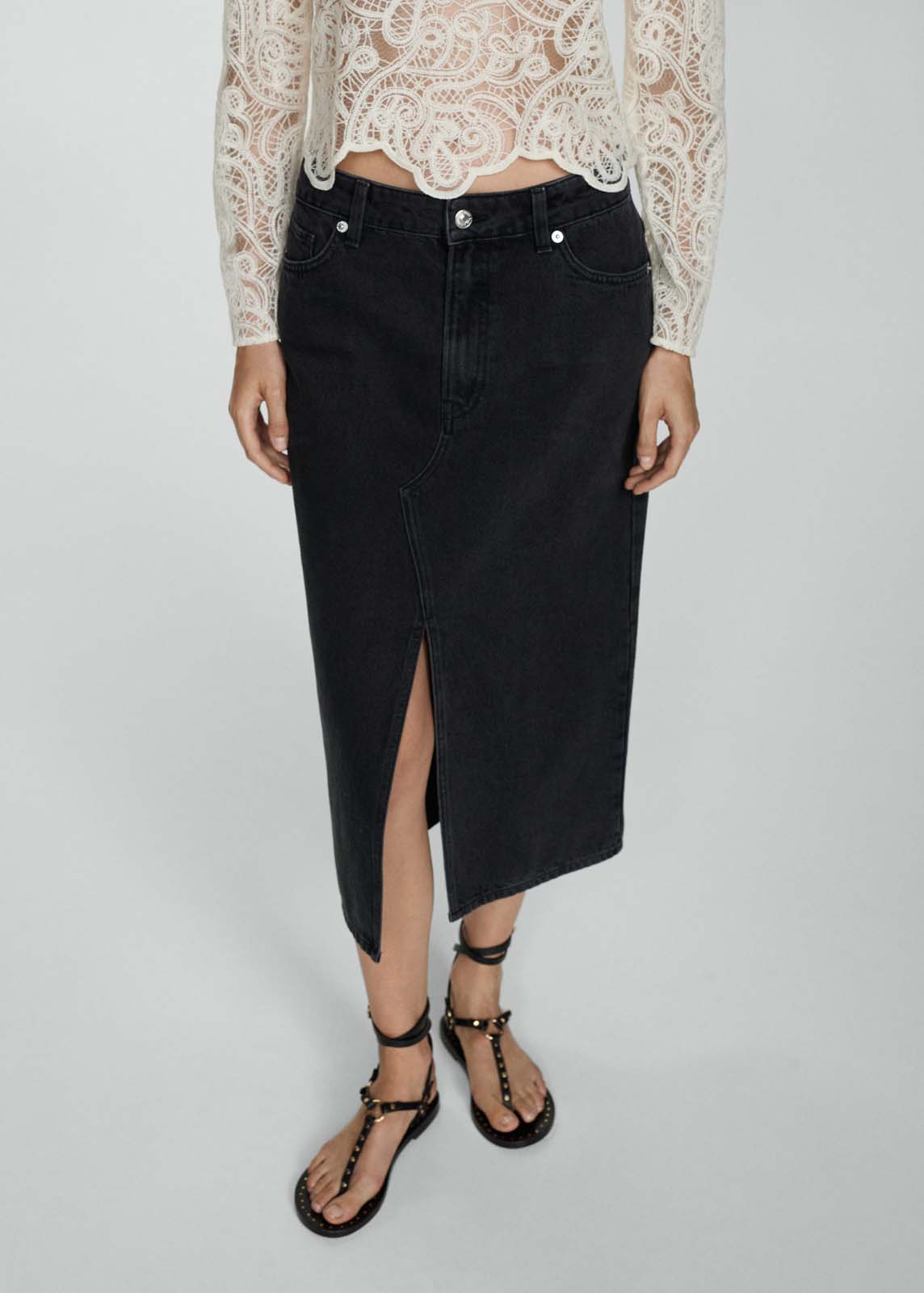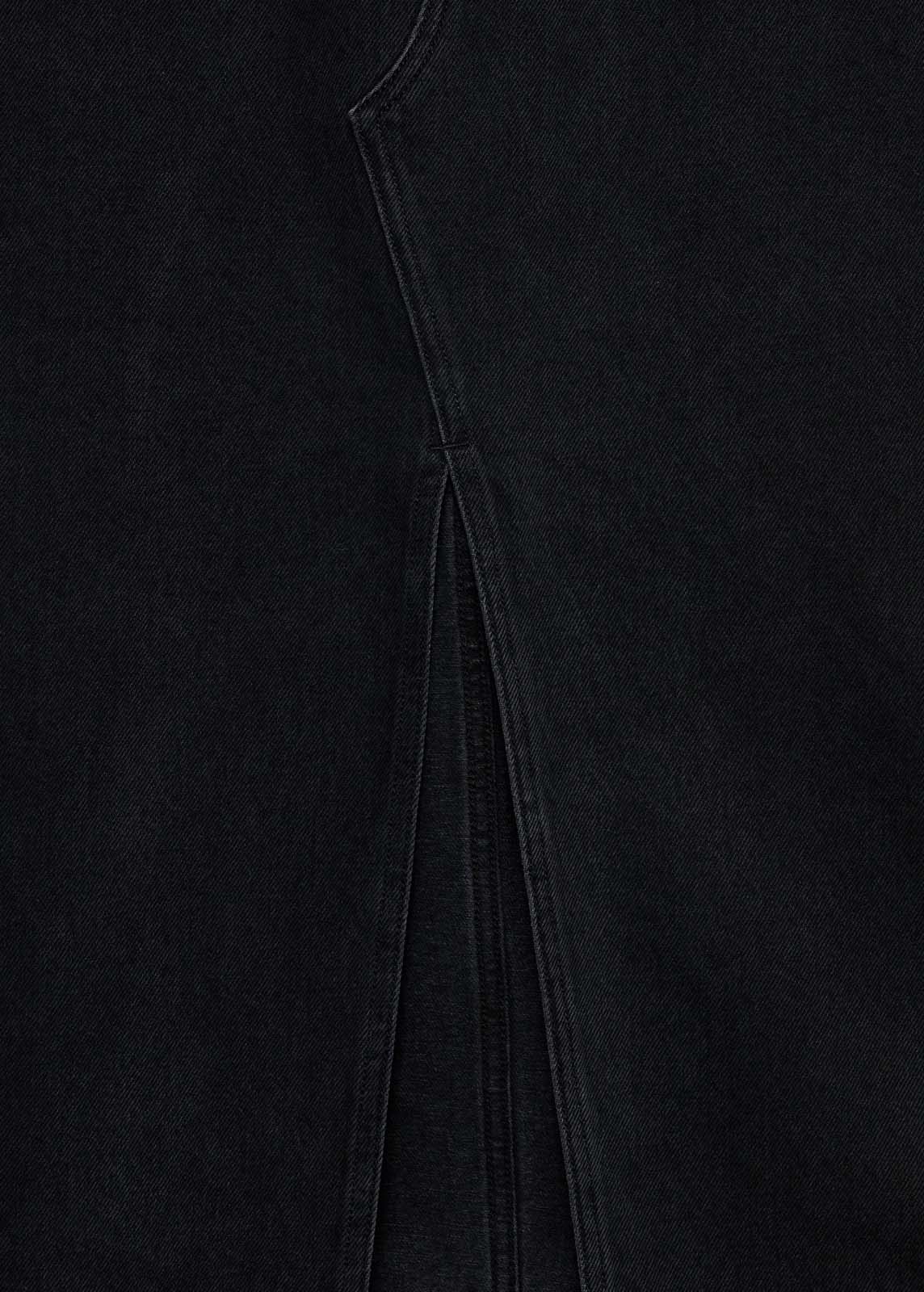 Cierre de cremallera y botón,Abertura en el bajo parte delantera,Trabillas,Cinco bolsillos,Diseño recto,Tejido de algodón estilo tejano vaquero,Diseño midi