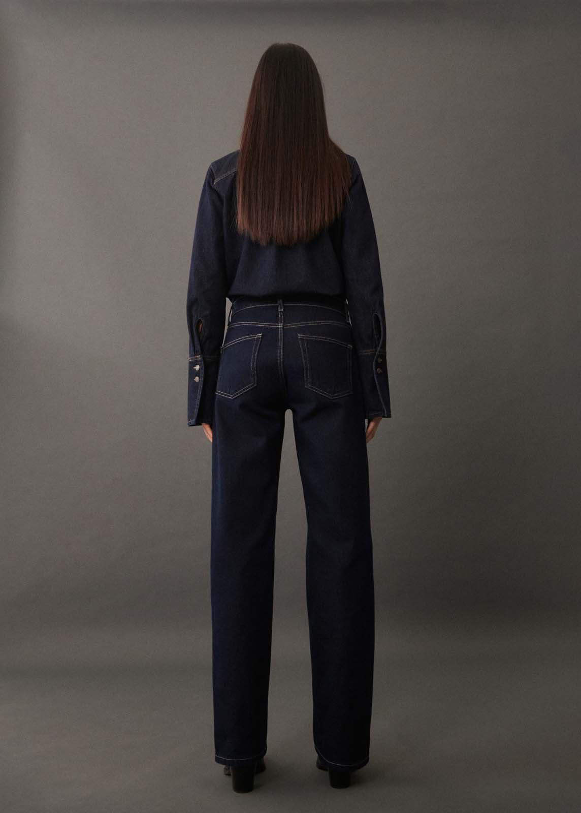 Cierre de cremallera y botón,Trabillas,Cinco bolsillos,Diseño recto,Tejido de algodón estilo tejano vaquero,Diseño largo,Largo interior 82 cm,Tiro alto