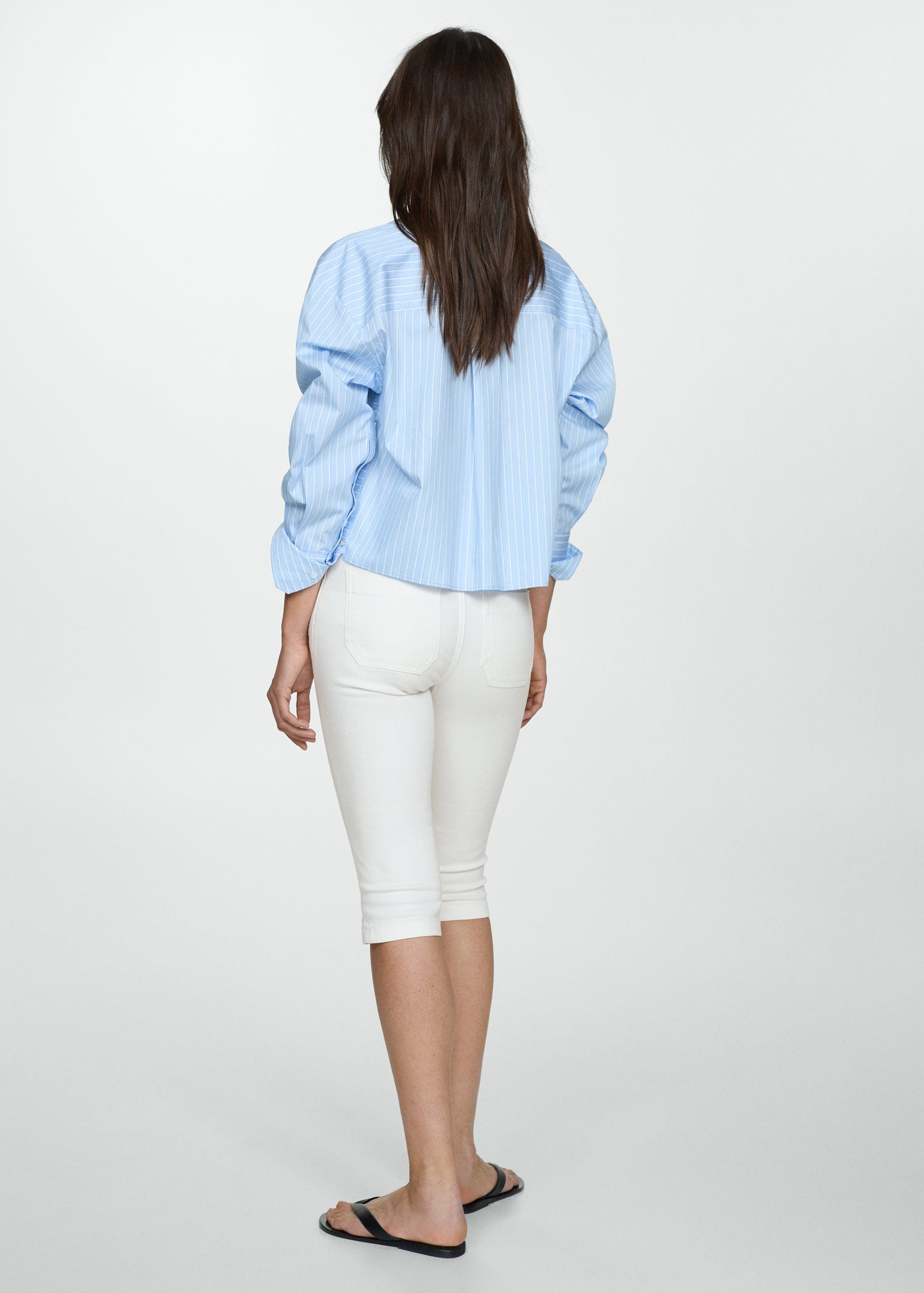 Cierre de cremallera y botón,Trabillas,Tiro medio,Dos bolsillos delanteros,Festival Season,Corte skinny,Dos bolsillos de parche en la parte posterior,Costuras decorativas,Tejido de algodón estilo tejano vaquero,Diseño capri,Largo interior 42,5 cm