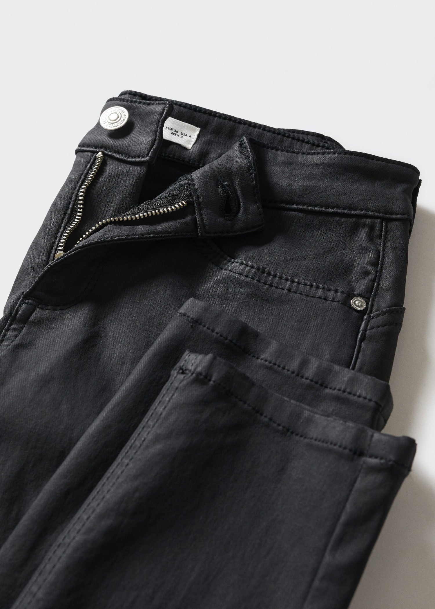 • Jeans skinny push-up encerados- Tejido elástico,Diseño largo,Trabillas,Cinco bolsillos,Cierre de cremallera y botón,Corte skinny,Tiro bajo,Efecto encerado,Disponible Plus,Largo interior 74 cm- No usar lejia, Plancha max 110°c, Lavar a maquina max 30°c centrifugado corto, No limpiar en seco, No se puede usar secadora- COMPOSICIÓN: 76% VISCOSA, 21% POLIAMIDA, 3% ELASTANO - 744mm x 1006mm-