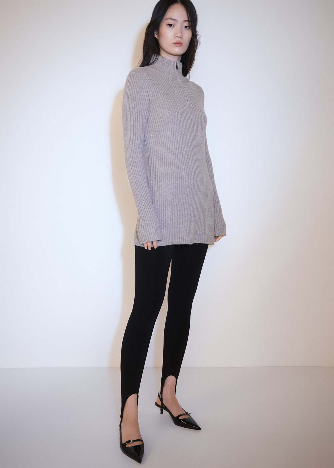 Manga larga acampanada,Tejido de punto grueso,Tejido de canalé,Total look,Cuello alto cremallera,Diseño largo,Diseño entallado,La modelo mide 1,75 y lleva una talla S/36