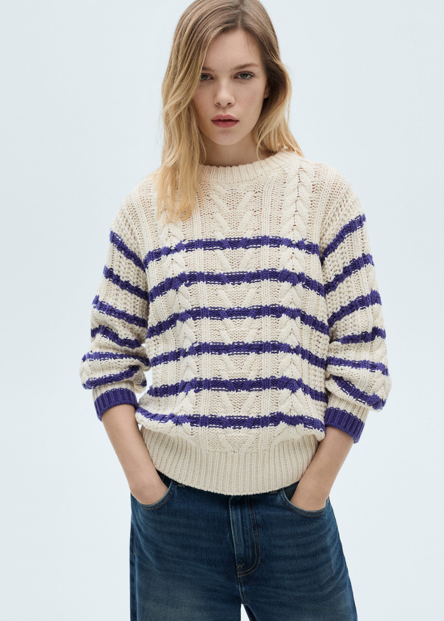 Estampado de rayas,Tejido de punto grueso,Terminaciones de canalé,Cuello redondo,Diseño recto,Tejido punto trenzado