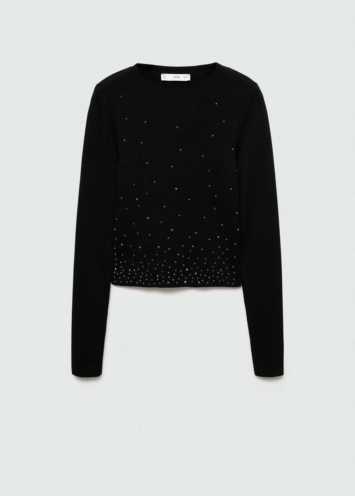 Colección fiesta y ceremonia,Tejido de punto fino,Sin cierre,Diseño crop,Cuello redondo,Diseño recto,Diseño de strass,La modelo mide 1,81 y lleva una talla S/36,Manga larga