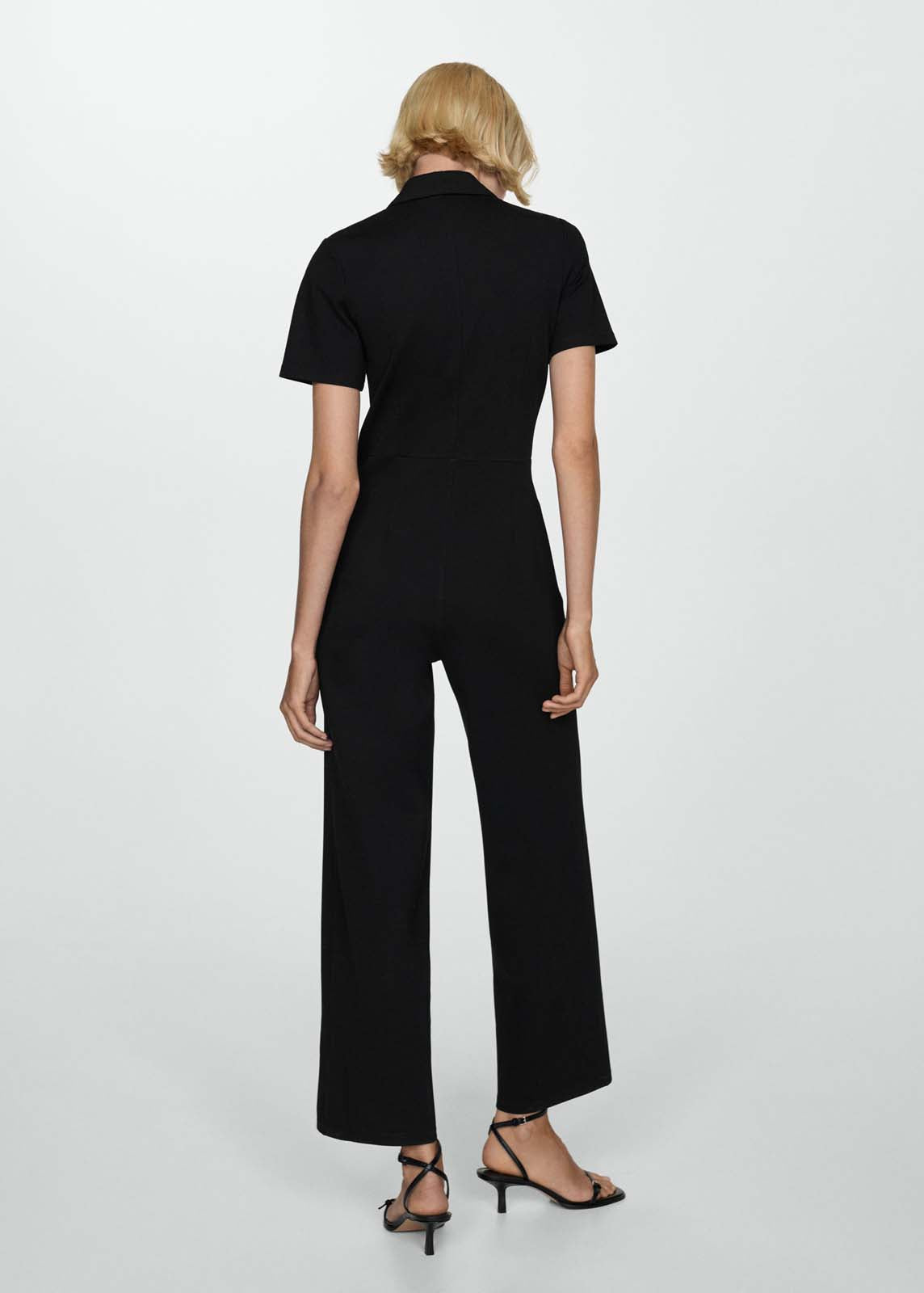 Manga corta,Tejido fluido,Dos bolsillos de cremallera en la parte frontal,Cuello polo,Cierre de cremallera en la parte delantera,Diseño largo,Diseño entallado