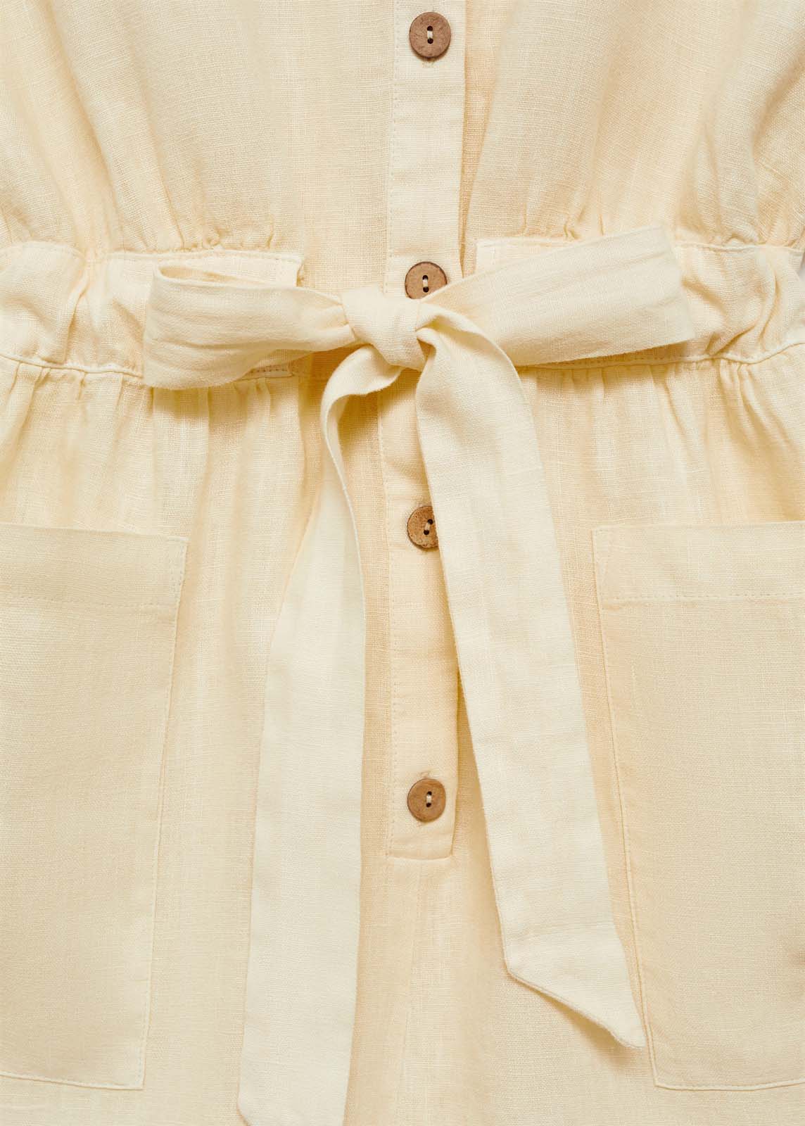 Manga corta,Dos bolsillos de parche en la parte delantera,Diseño corto,Tejido 100% de lino,Diseño recto,Cuello camisero,Cierre delantero con botones,Cintura elástica con cierre de lazo