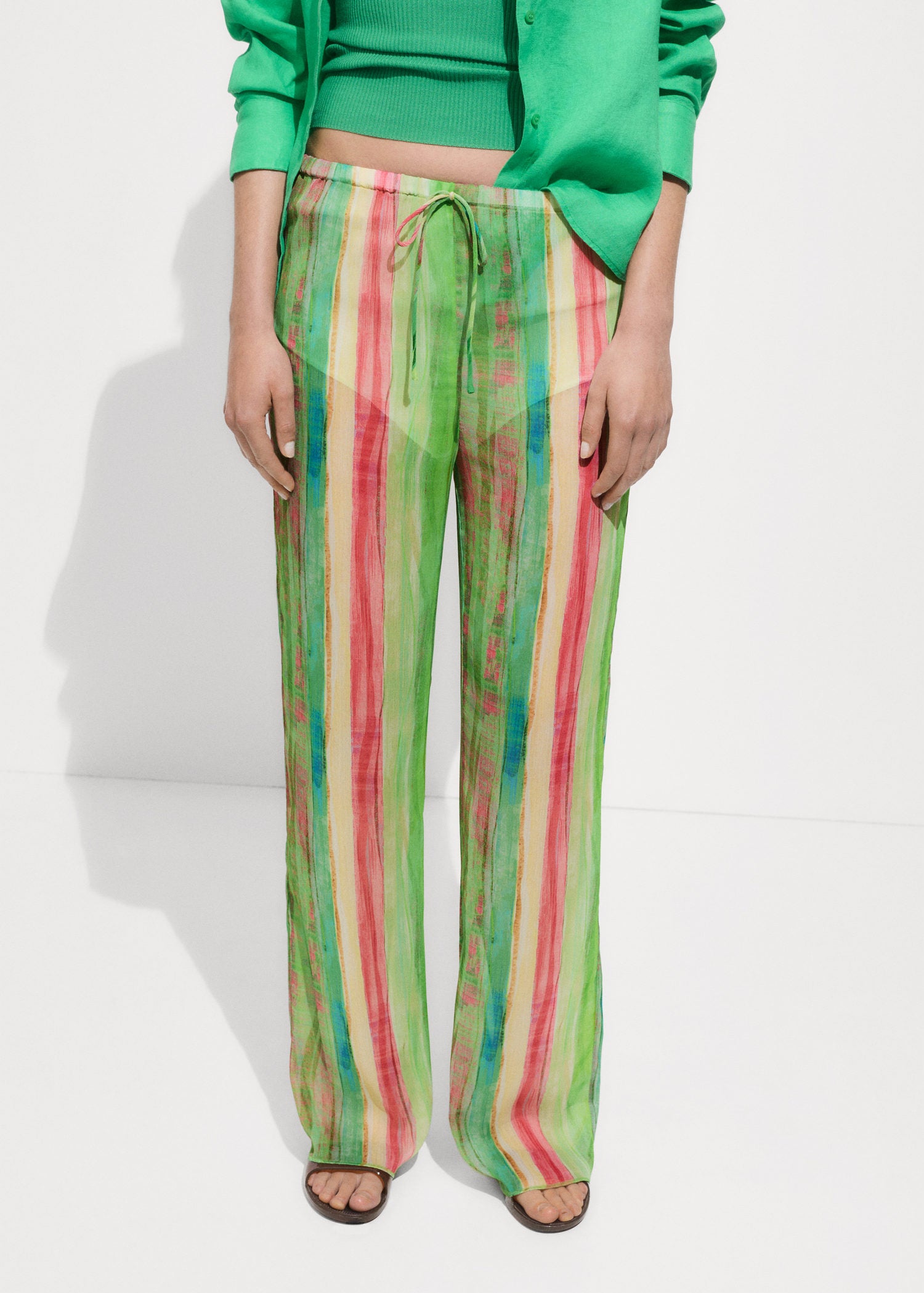 Estampado de rayas,Tejido fluido,Tiro medio,Festival Season,Tejido semitransparente,Total look,Diseño recto,Diseño largo,Cintura elástica con cierre de lazo