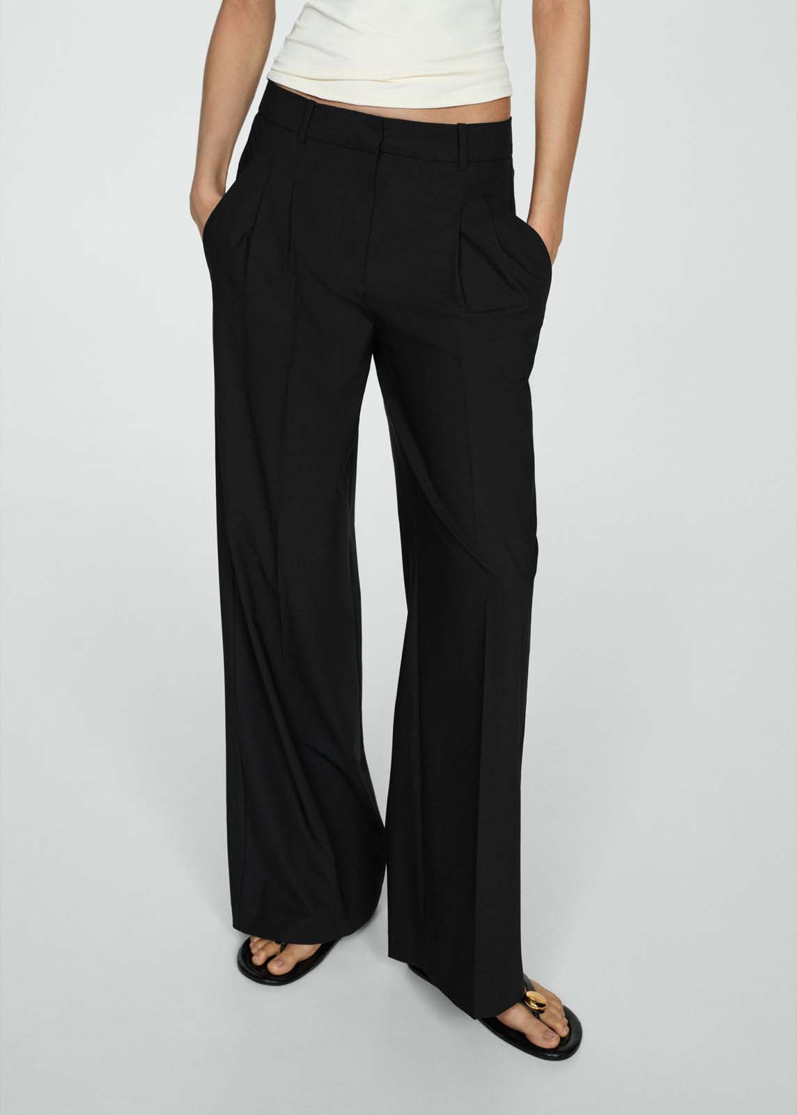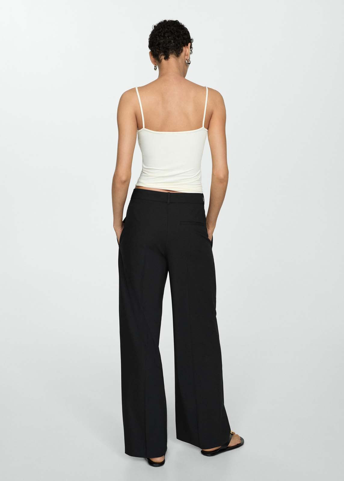 Trabillas,Tiro medio,Detalle de pinzas,Dos bolsillos laterales,Cierre oculto de botón, gancho y cremallera,Diseño recto,Diseño largo,Bolsillo de ribete en la parte posterior