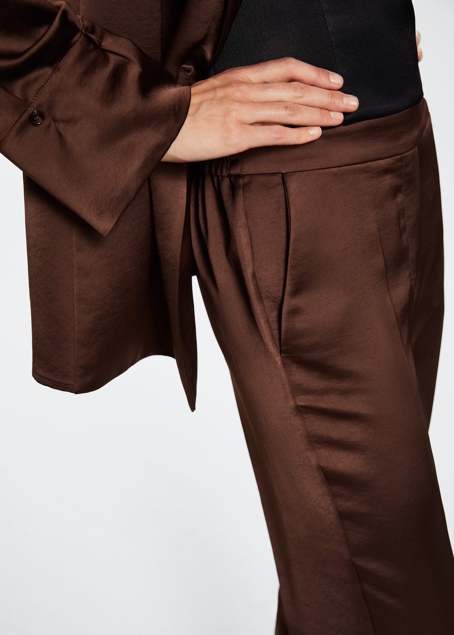 Tejido fluido. Tejido satinado. Diseño recto. Estilo traje. Cintura elástica. Sin cierre. Total look.