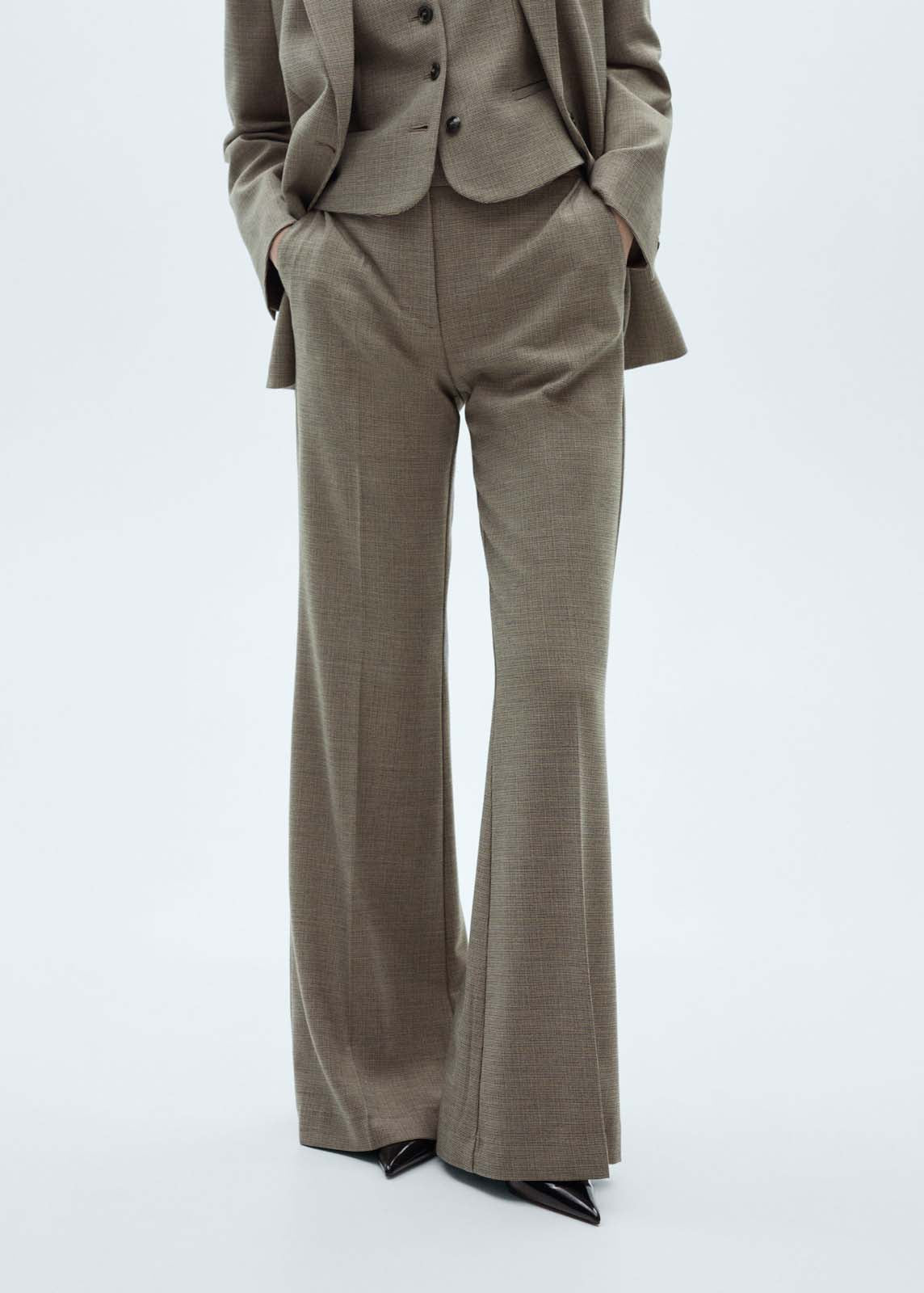 Trabillas,Estampado de cuadros,Tiro medio,Dos bolsillos de ribete en la parte posterior,Dos bolsillos laterales,Cierre oculto de botón, gancho y cremallera,Disponible Plus,Total look,Diseño campana,Estilo traje,Estilo flare,Diseño largo,La modelo mide 1,75 y lleva una talla S/36