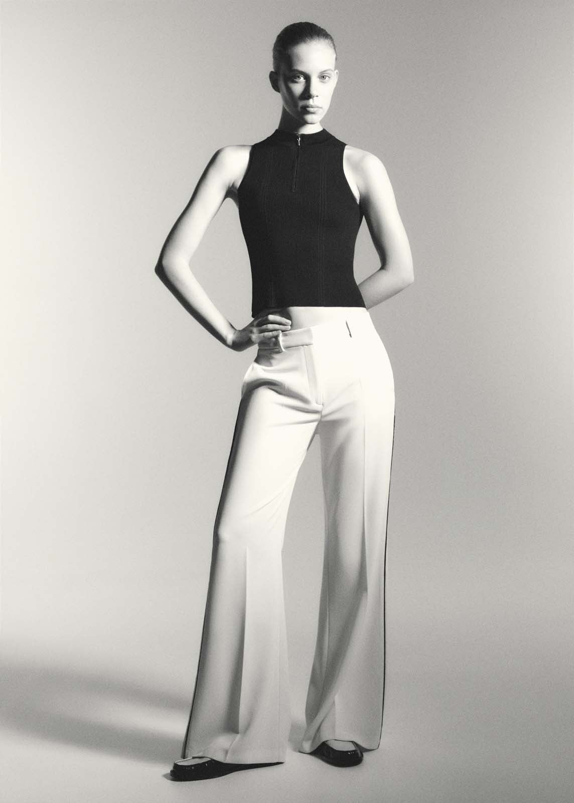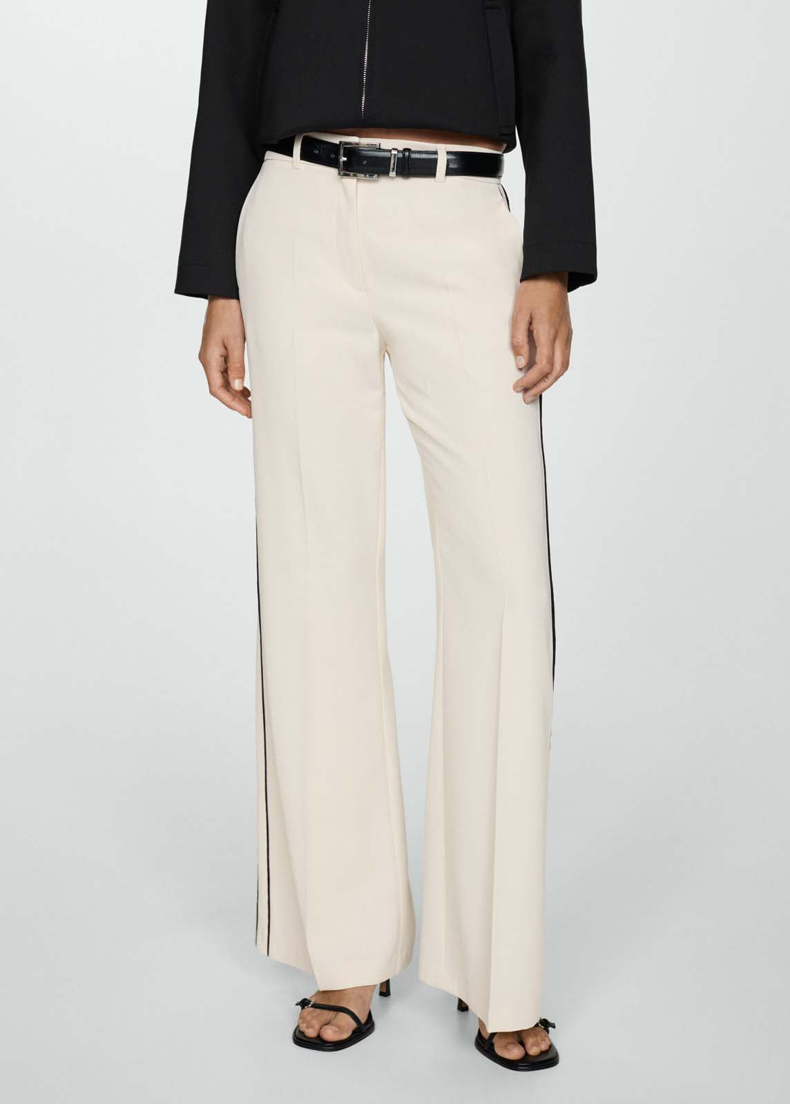 Diseño wideleg,Trabillas,Tejido fluido,Dos bolsillos laterales,Cierre oculto de botón, gancho y cremallera,Diseño de rayas
