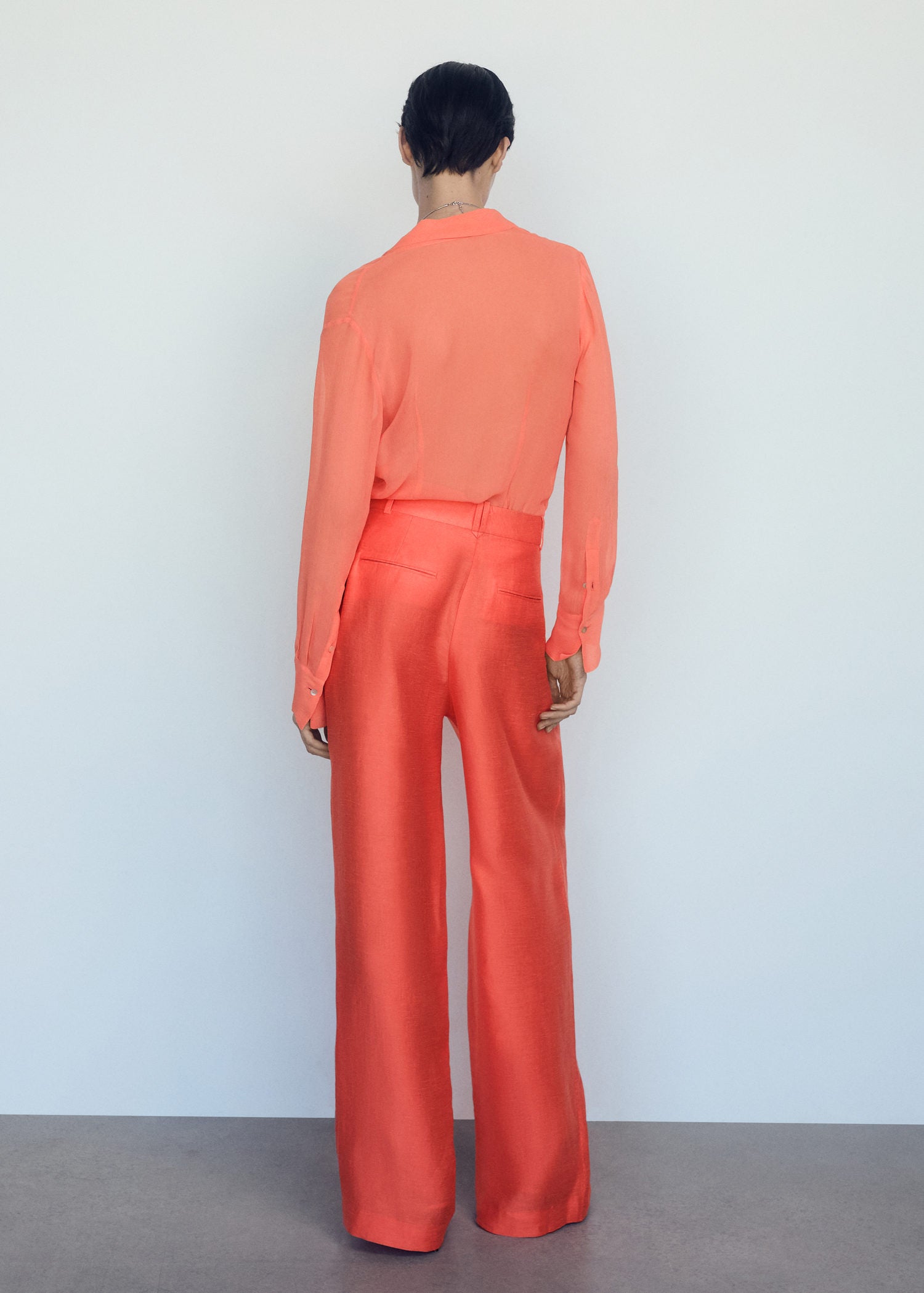 Diseño largo,Trabillas,Dos bolsillos laterales,Dos bolsillos de ribete en la parte posterior,Cierre oculto de botón, gancho y cremallera,Colección fiesta y ceremonia,Tejido mezcla de lino y lyocell,Diseño wideleg
