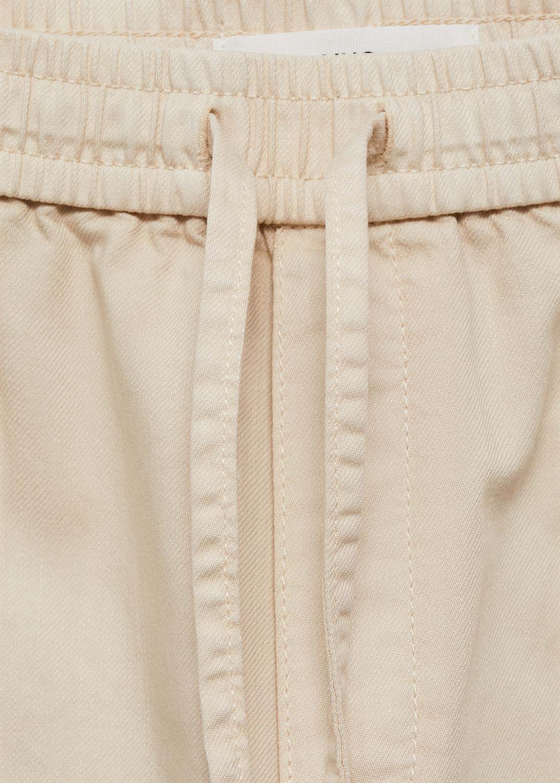 Cintura con goma elástica,Tiro medio,Cierre de lazo,Diseño recto,Bolsillos cargo,Dos bolsillos de parche en la parte posterior,Tejido 100% algodón