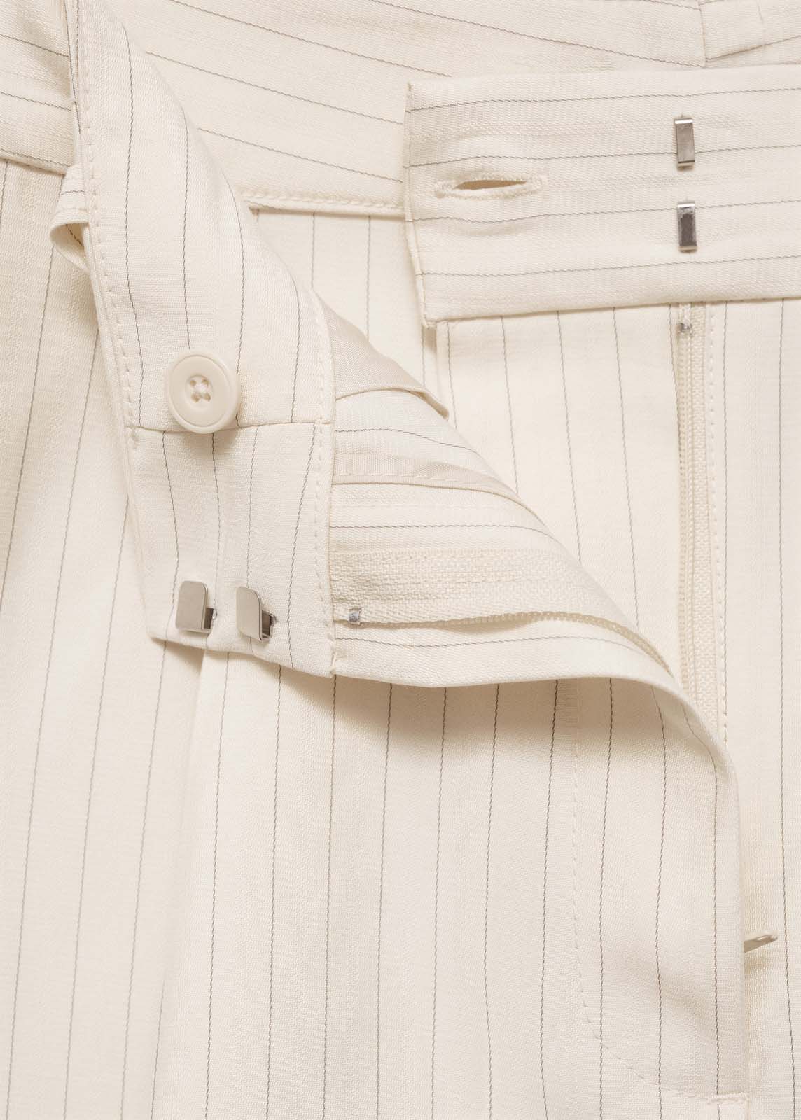 La modelo mide 178 y lleva una talla 36,Trabillas,Tejido fluido,Dos bolsillos laterales,Cierre oculto de botón, gancho y cremallera,Total look,Diseño recto,Diseño de rayas
