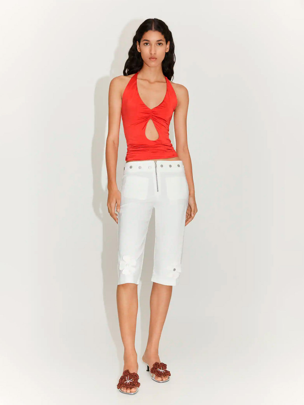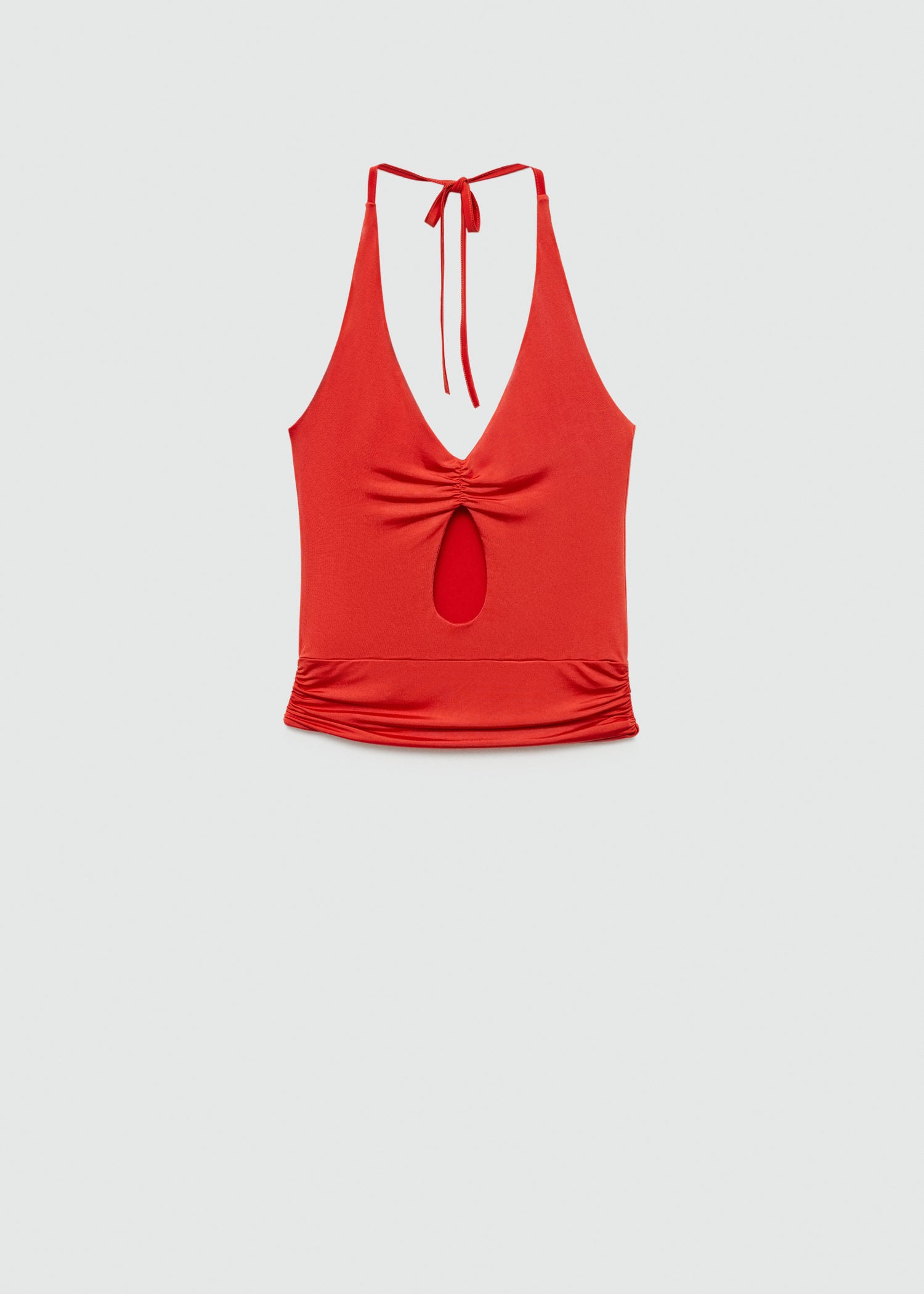 Tejido fluido,Tirantes finos,Detalle de abertura,Detalles fruncidos,Cierre de lazo en el cuello,Sin mangas,Cuello halter,Diseño entallado,Tejido de tul