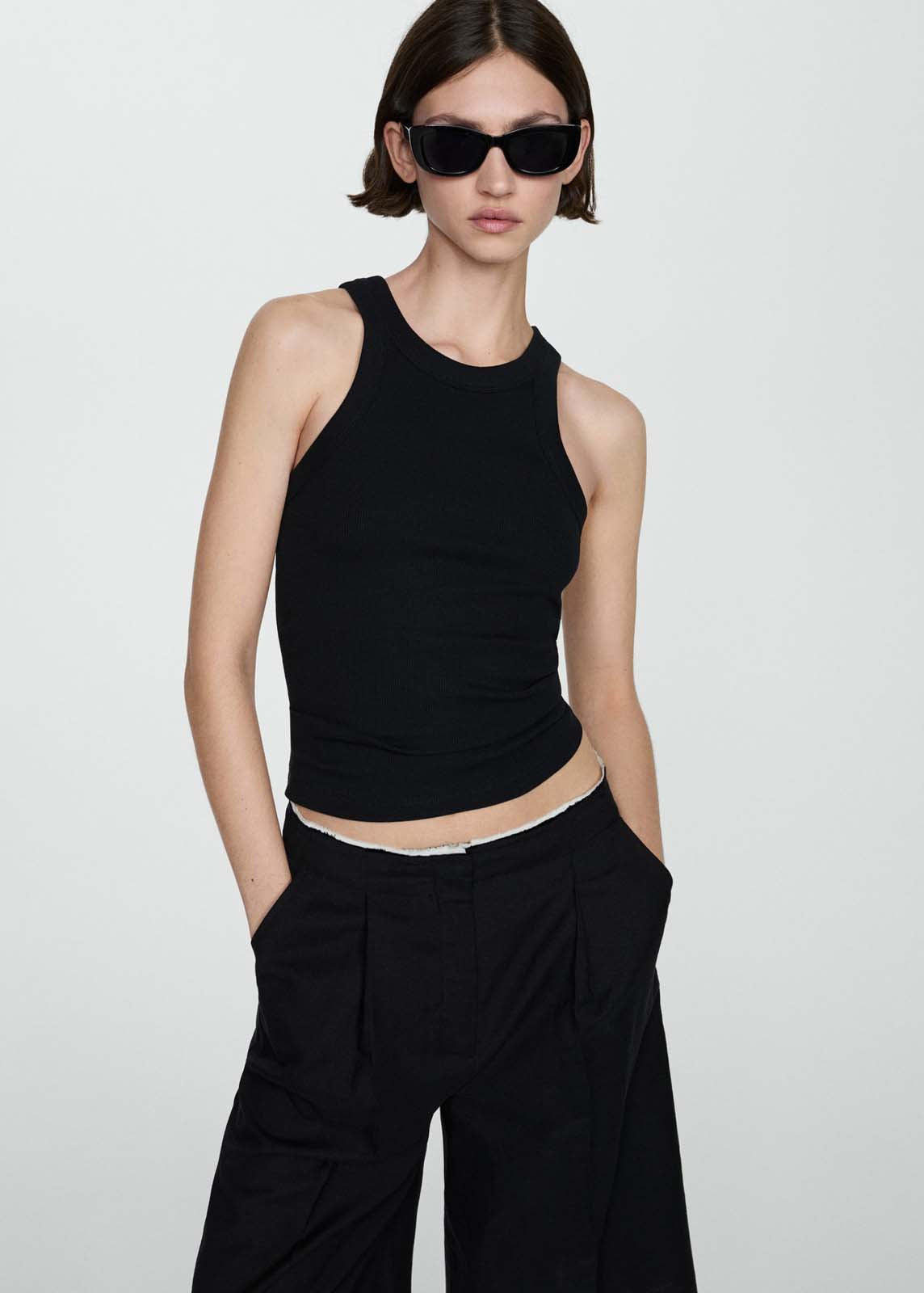 Tejido de canalé,Cuello redondo,Disponible Plus,Diseño recto,Sin mangas,Tejido mezcla de algodón