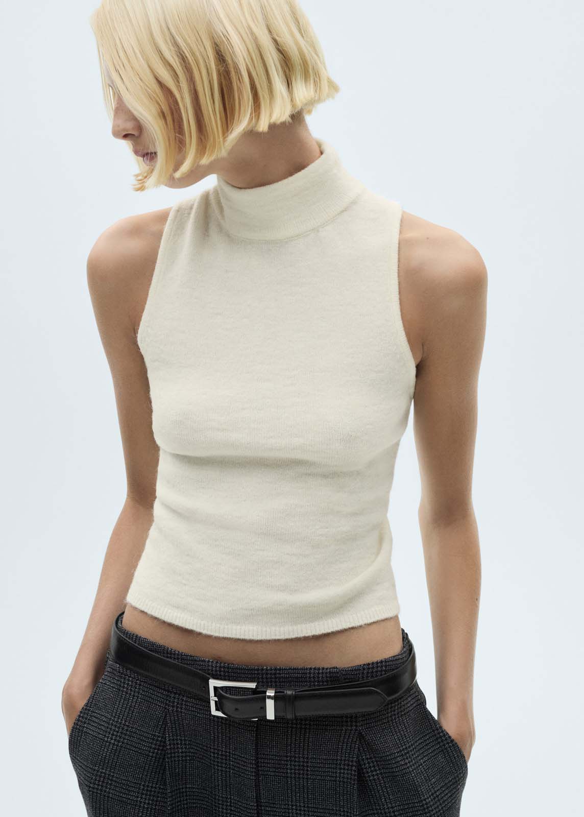 Espalda abierta,Tejido de punto,Sin cierre,Tirantes anchos,Cuello perkins,Diseño entallado,La modelo mide 1,79 y lleva una talla S/36