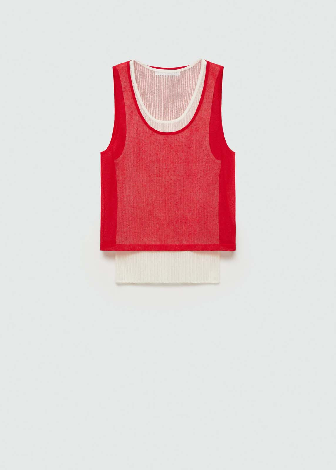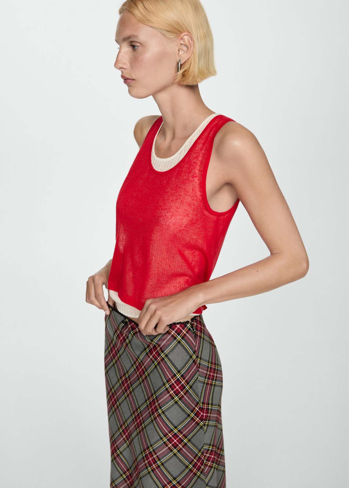 Tejido de punto fino,Cuello redondo,Tirantes anchos,Tejido mezcla de lino y lyocell,Diseño recto,Sin mangas,Diseño combinado