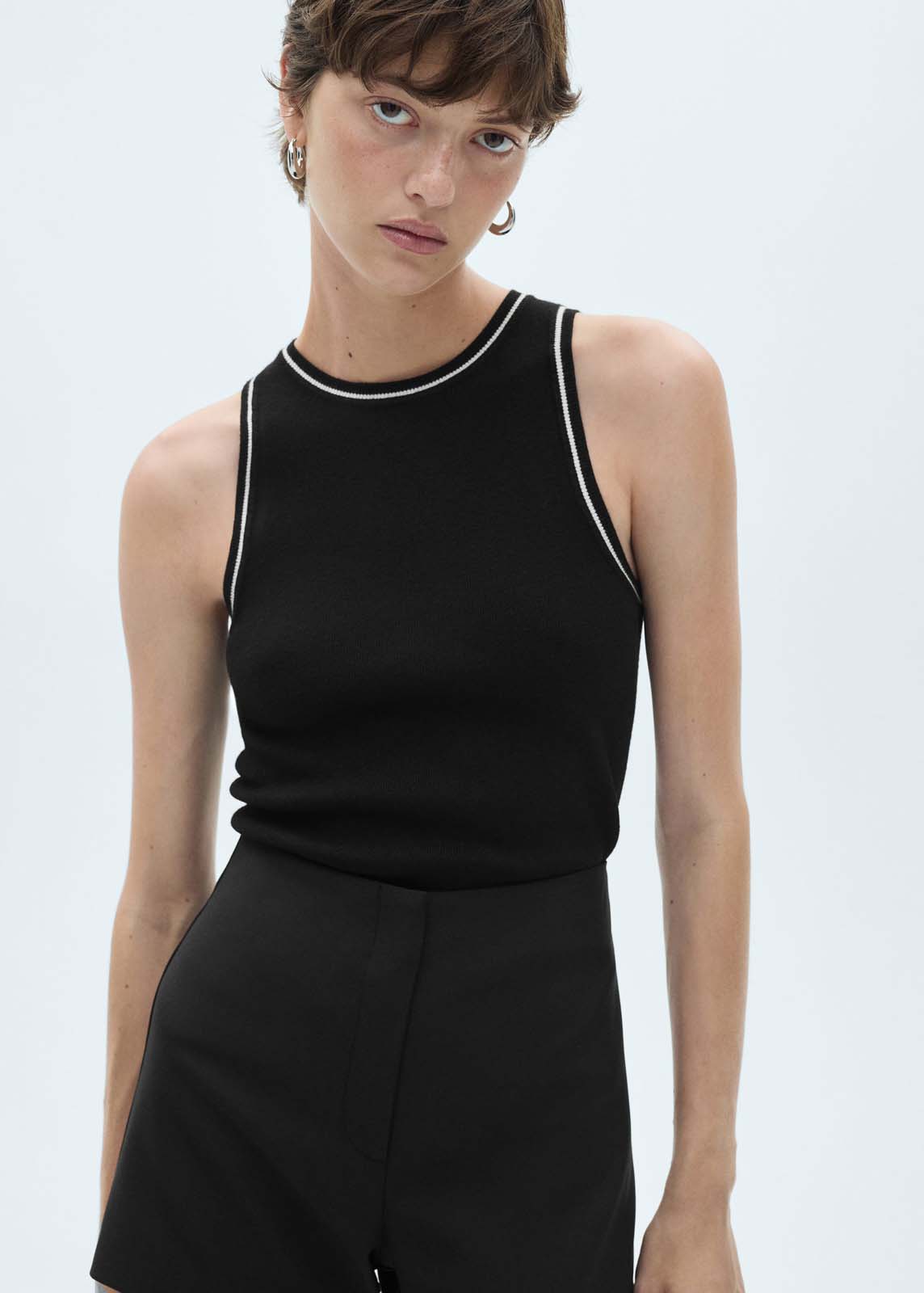 Tejido de punto fino,Cuello redondo,Tirantes anchos,Detalle en contraste,Diseño recto,Sin mangas,Diseño entallado,La modelo mide 1,74 y lleva una talla S/36