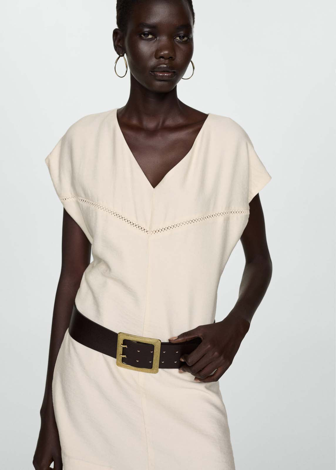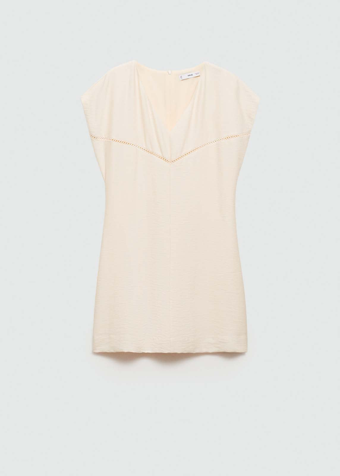 Manga corta,Cuello pico,Detalle bordado,Diseño corto,Diseño evasé,Cierre de cremallera invisible en la parte posterior