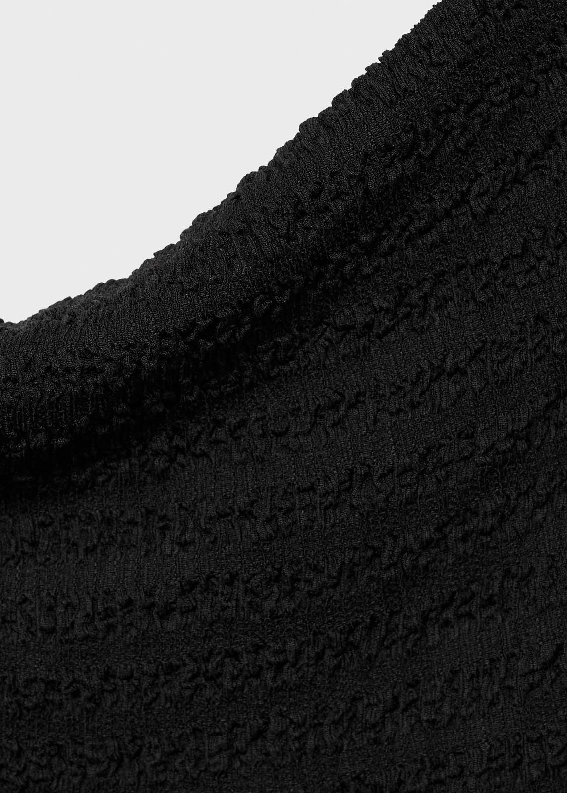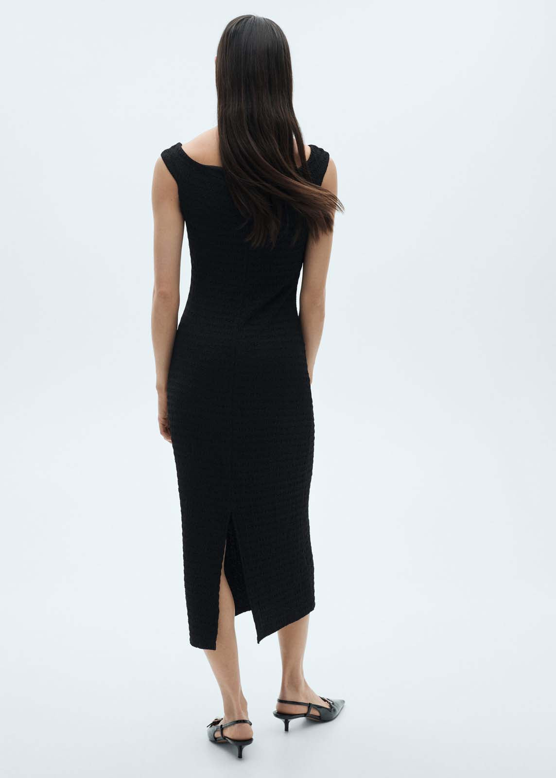 Abertura posterior en el bajo,Colección fiesta y ceremonia,Manga corta,Cuello barco,Sin cierre,Tejido con textura,Hombros descubiertos,Diseño midi,Diseño entallado,La modelo mide 1,76 y lleva una talla S/36,La modelo mide 1,78 y lleva una talla S/36