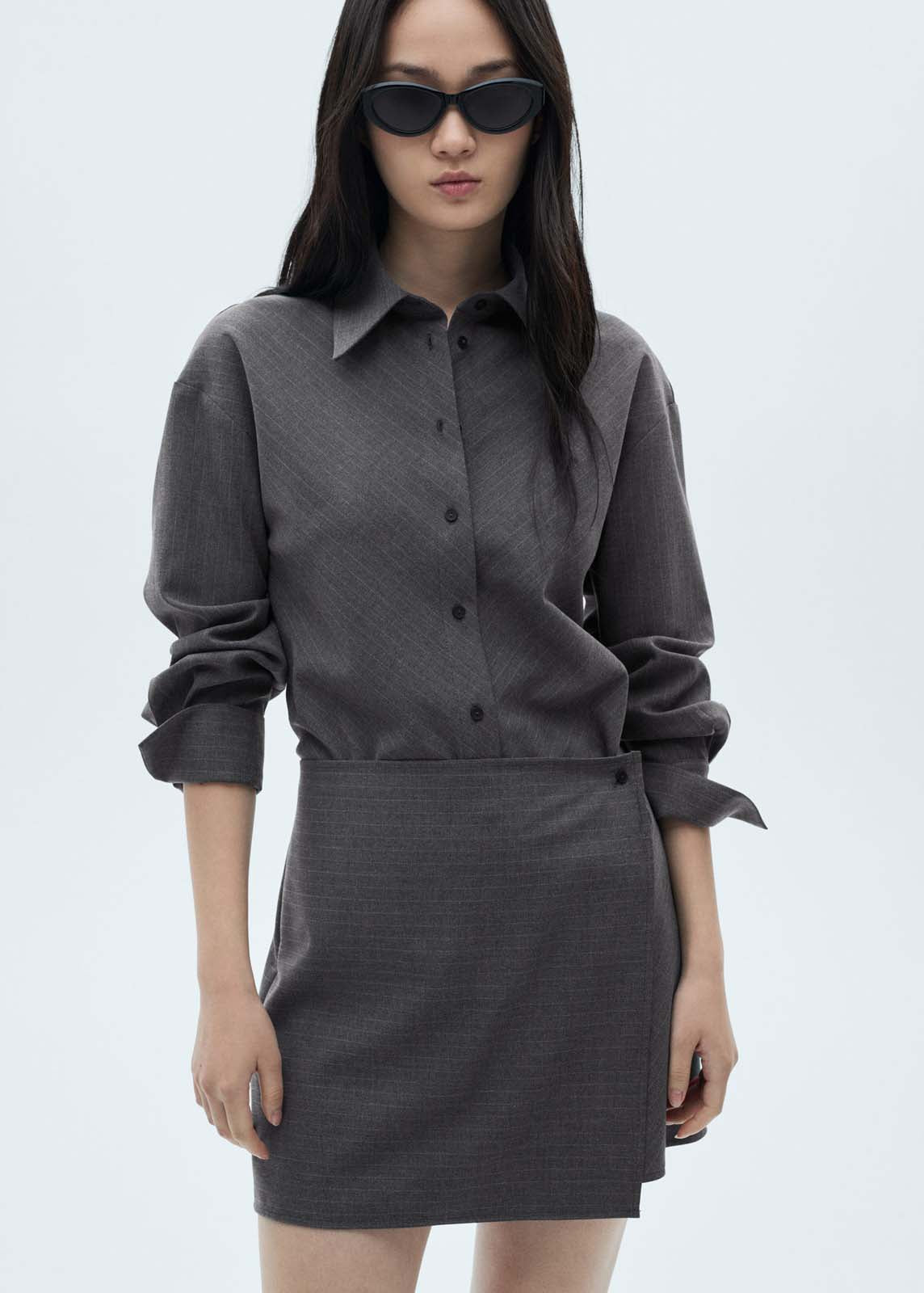 Diseño cruzado,Cierre de botones en la parte delantera,Diseño corto,Estampado de raya diplomática,Manga larga con puños abotonados,Cuello camisero,Diseño entallado,La modelo mide 1,75 y lleva una talla S/36