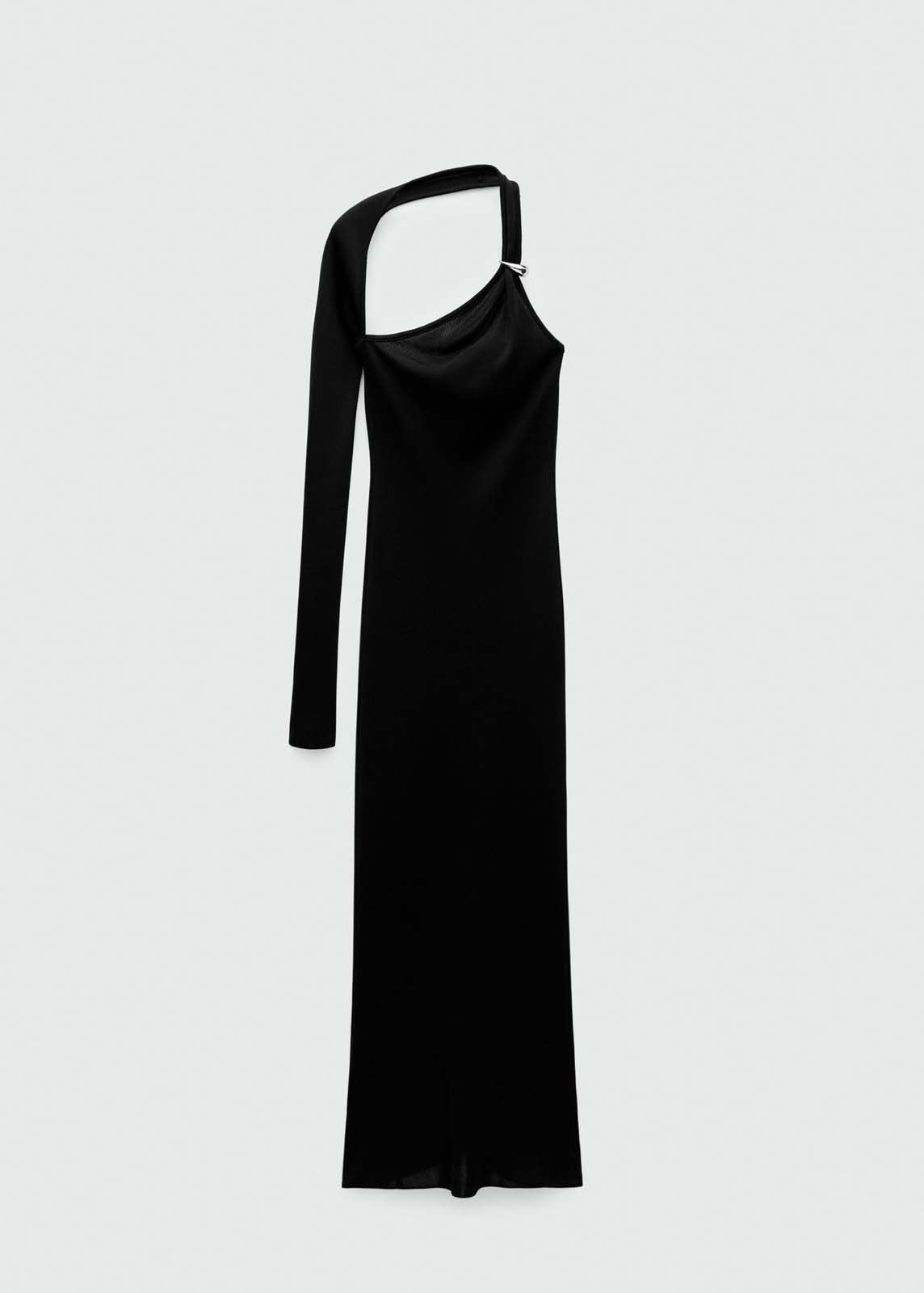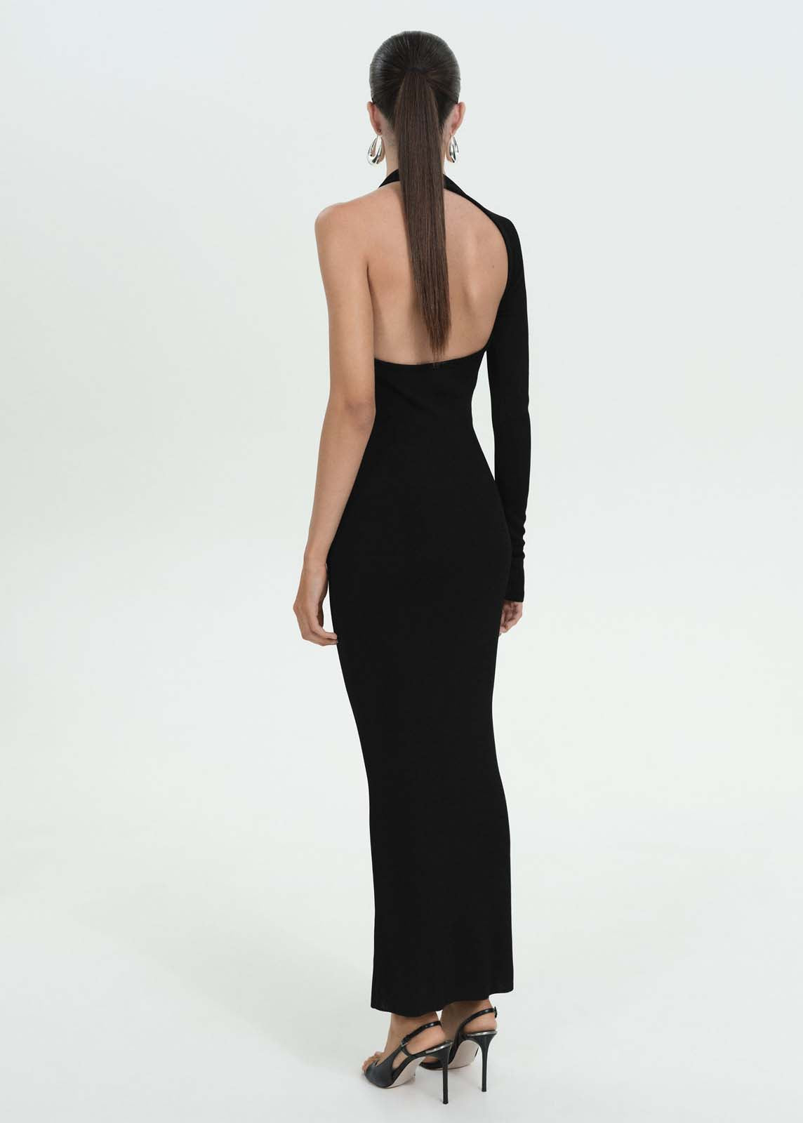 Espalda abierta,Colección fiesta y ceremonia,Tejido de punto fino,Diseño asimétrico,Escote asimétrico,Detalle metálico,Diseño largo,Diseño entallado,La modelo mide 1,77 y lleva una talla S/36,Colección Selection,Manga larga