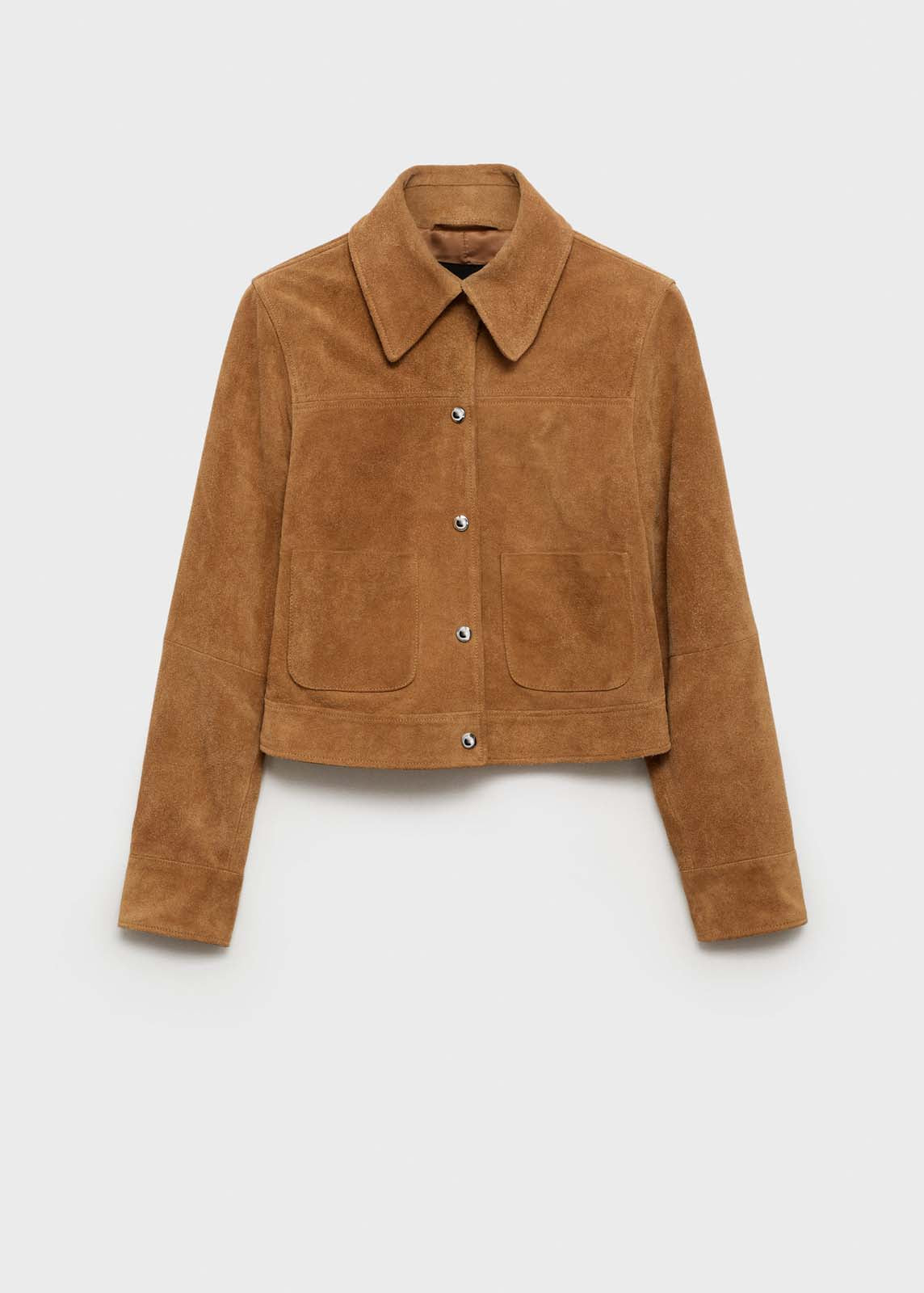 Dos bolsillos de parche en la parte delantera,Cierre de botones en la parte delantera,Manga larga con puños abotonados,100% piel bovino,Diseño recto,Cuello camisero,Tejido de ante,Forro interior