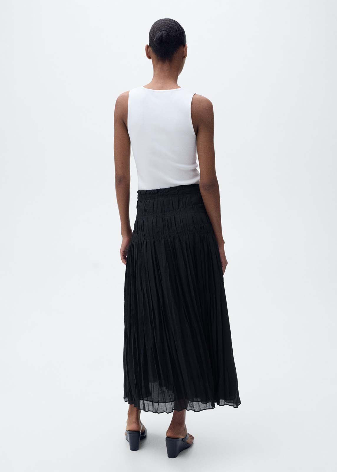 Panel fruncido en la cintura,Cintura con goma elástica,Tiro medio,Sin cierre,Diseño recto,Diseño midi