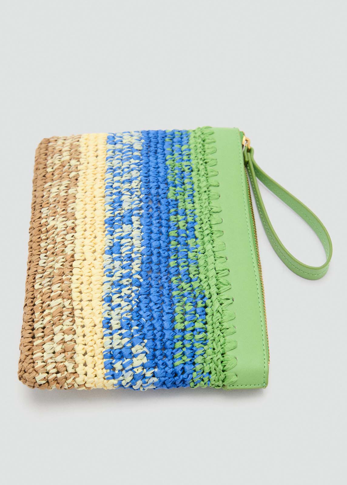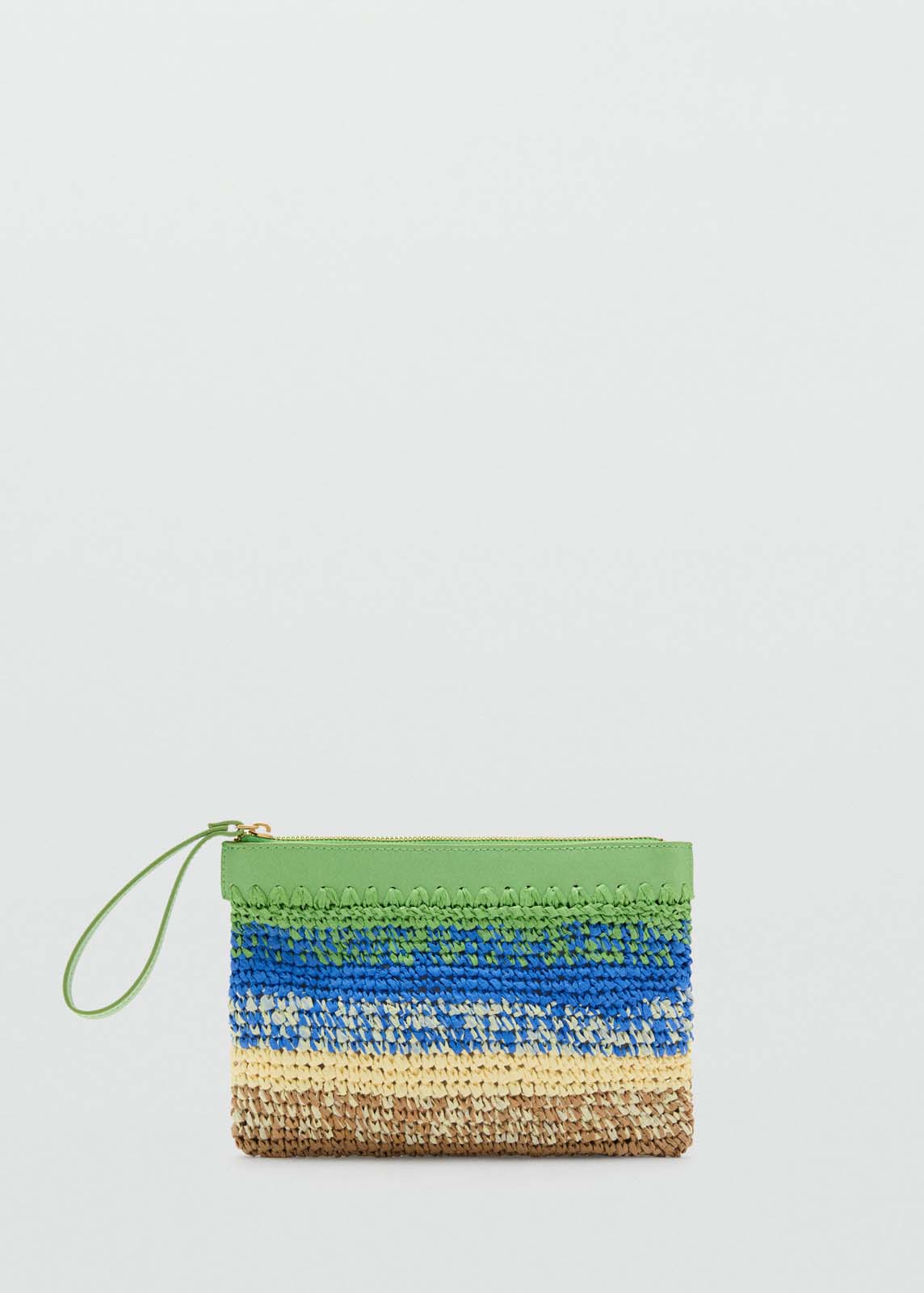 Tejido de fibra natural,Efecto degradado,Tamaño pequeño,Asa de mano,Diseño rectangular,Cierre de cremallera