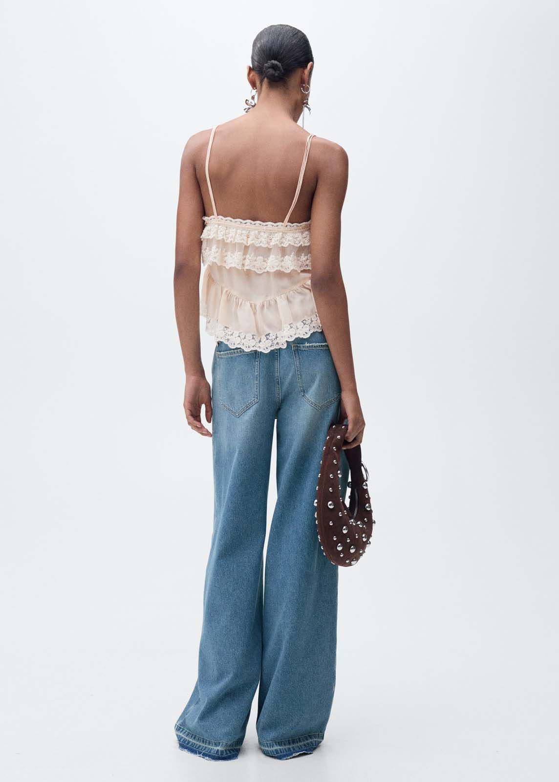 Diseño wideleg,Trabillas,Cierre delantero de cremallera y botón,Cinco bolsillos,Bajo deshilachado,Tejido de algodón estilo tejano vaquero,Diseño largo,Full length,Tiro alto