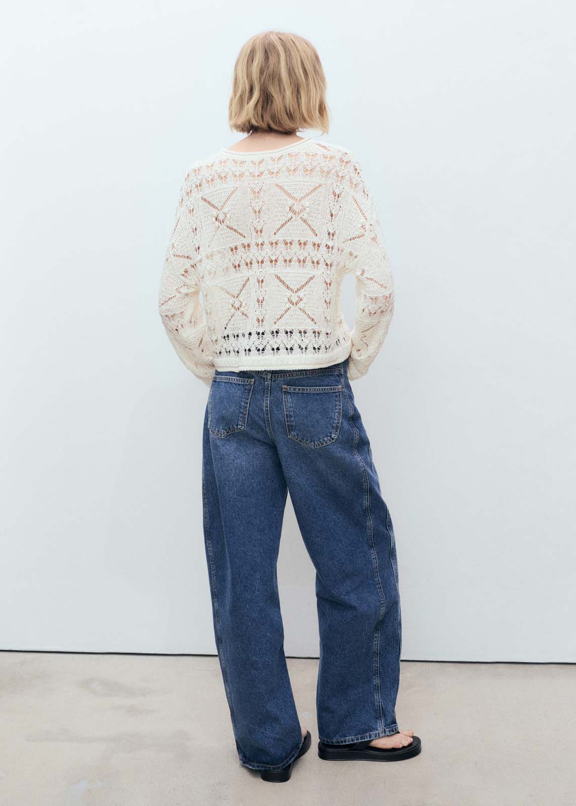 Tejido de punto calado,Sin cierre,Cuello redondo,Diseño oversize,Manga larga