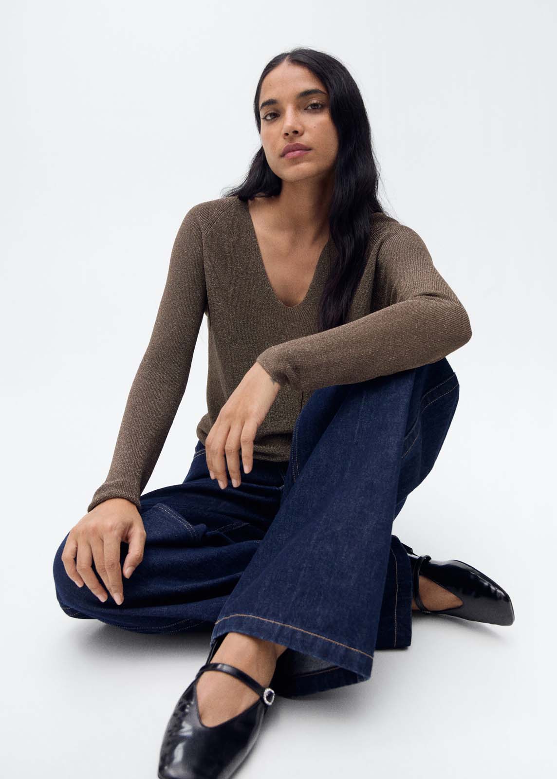Diseño estándar,Colección fiesta y ceremonia,Tejido de punto fino,Cuello pico,Sin cierre,Tejido de lúrex,Diseño recto,Manga larga