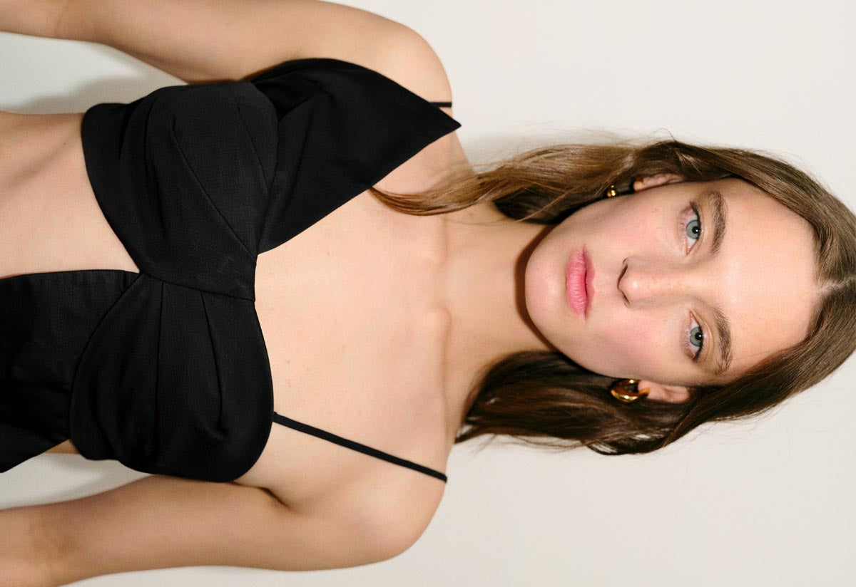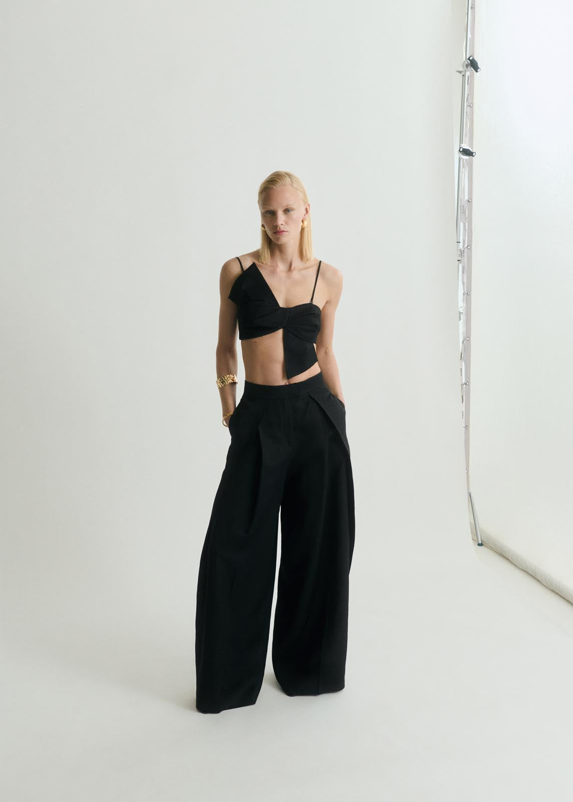 Panel fruncido elástico en la parte posterior,Esta prenda pertenece a nuestra colección de evento, diseñada para convertirte en la invitada perfecta en cualquier fiesta, boda o ceremonia,Tirantes finos,Tejido mezcla de lino,Diseño crop,Sin mangas,Diseño de lazo