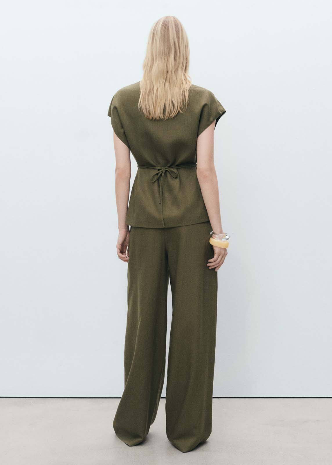 Manga corta,Diseño cruzado,Tejido mezcla de lino y lyocell,Total look,Diseño recto,Cuello de pico,Cierre de lazo ajustable