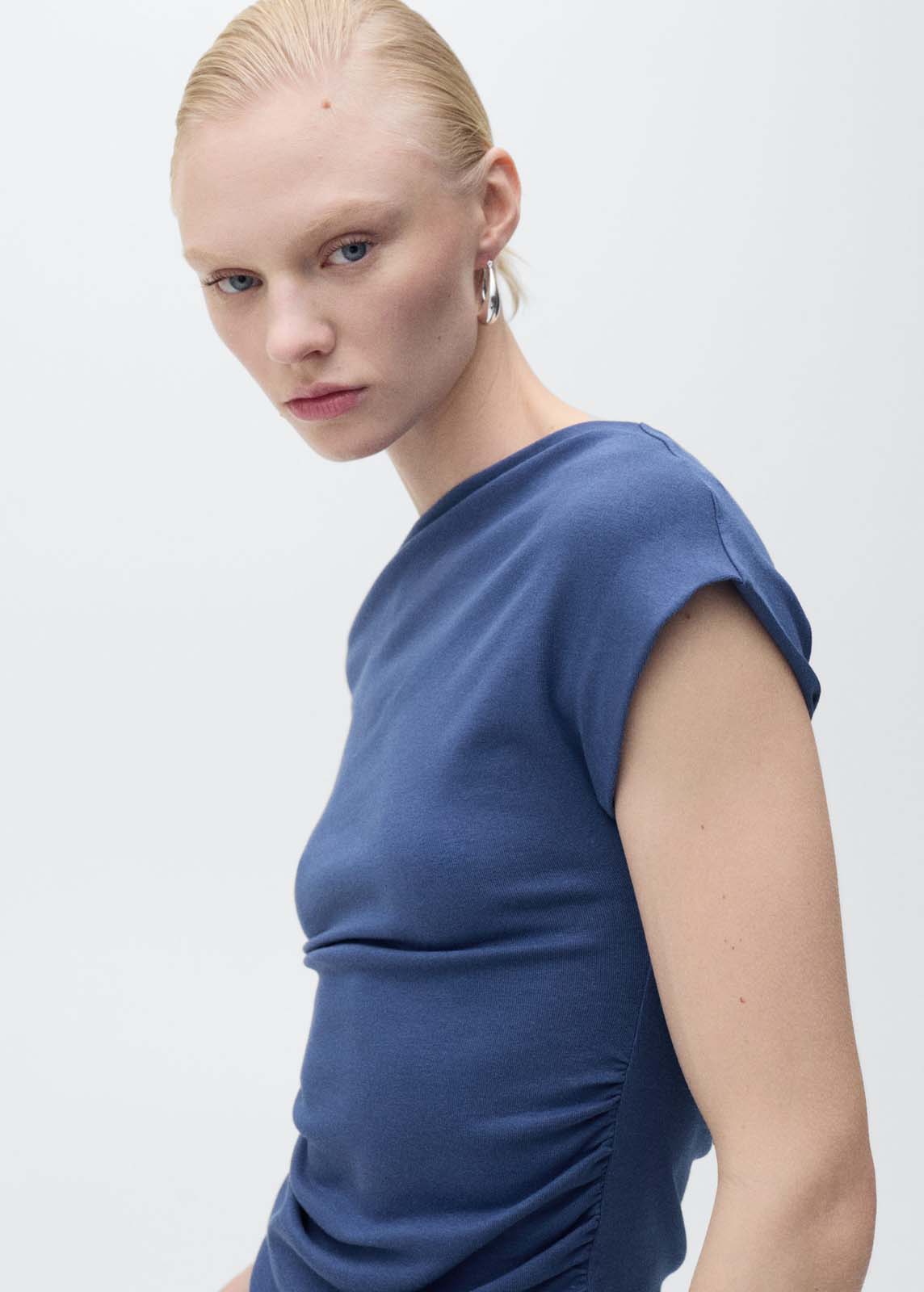 Manga corta,Sin cierre,Cuello asimétrico,Tejido mezcla de algodón,Diseño entallado,Cintura drapeada