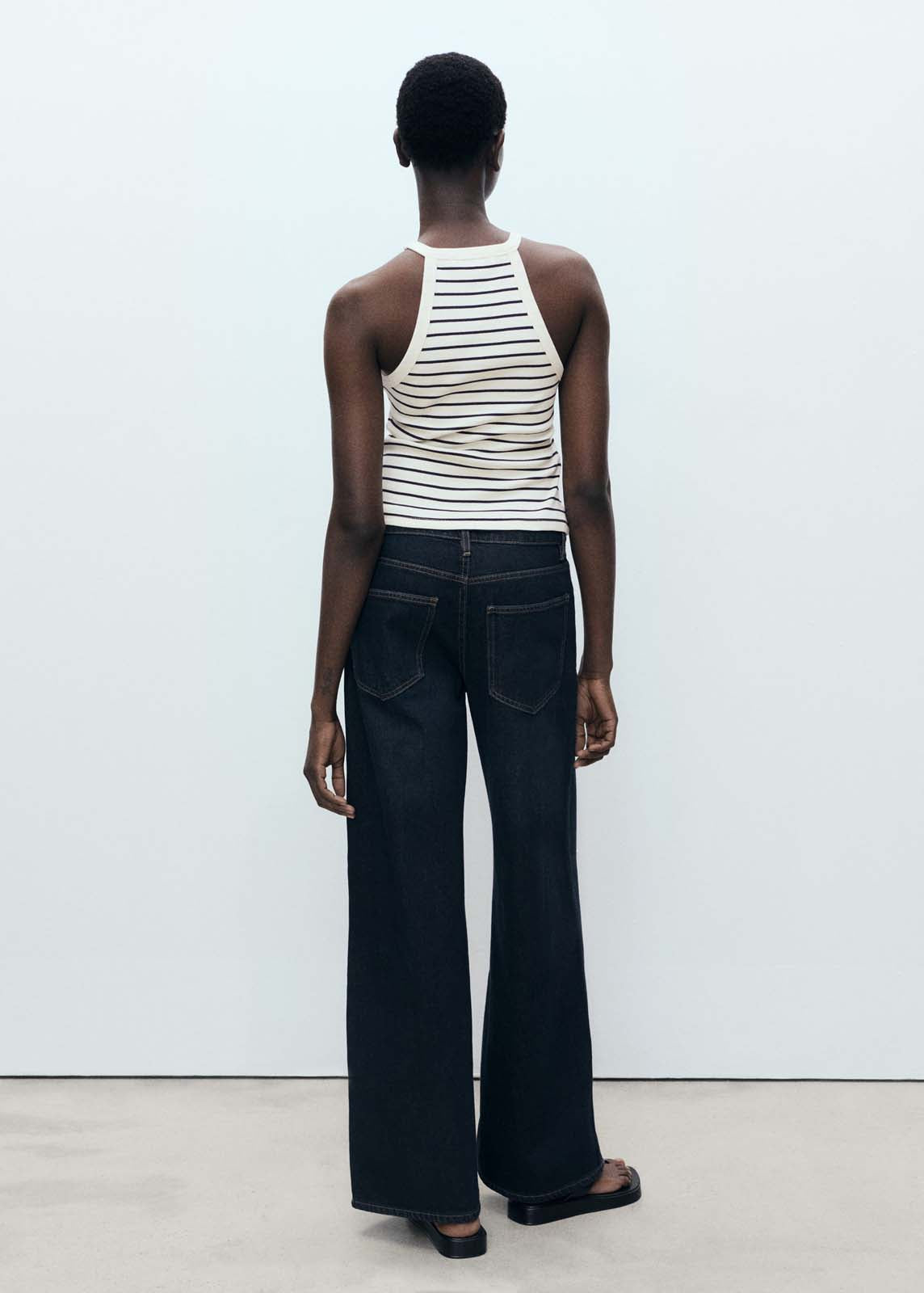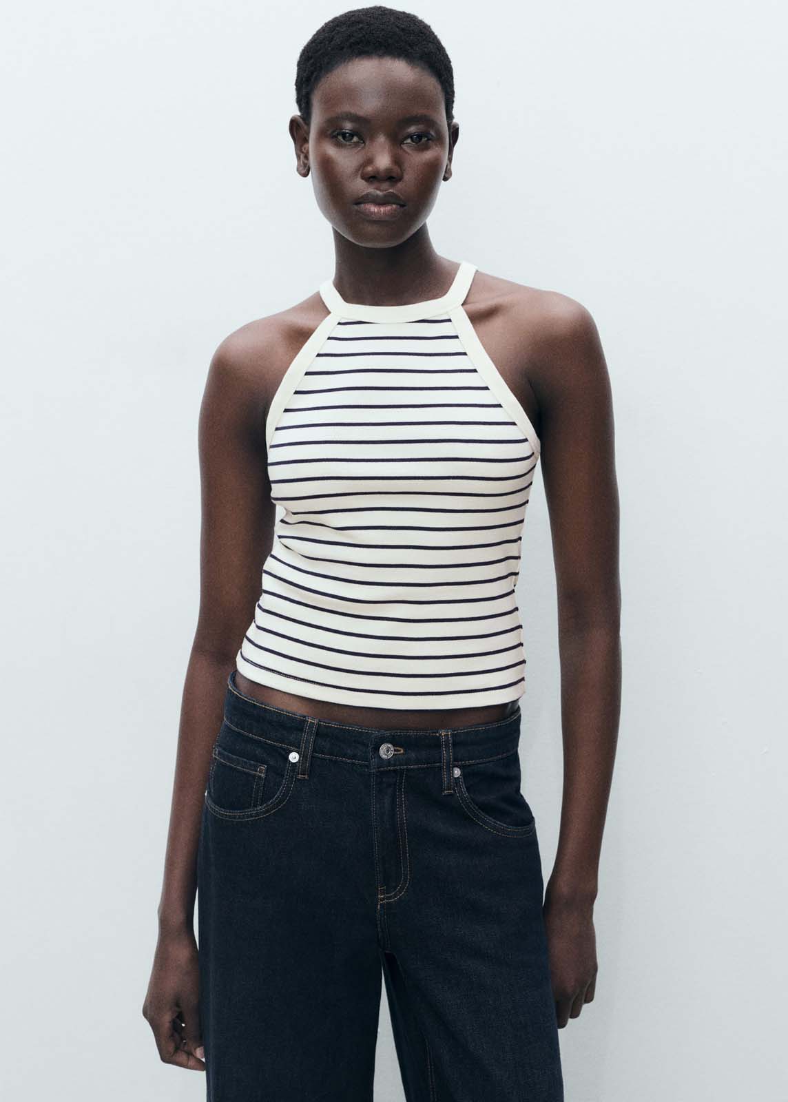 Estampado de rayas,Sin cierre,Sin mangas,Cuello halter,Tejido 100% algodón,Diseño entallado
