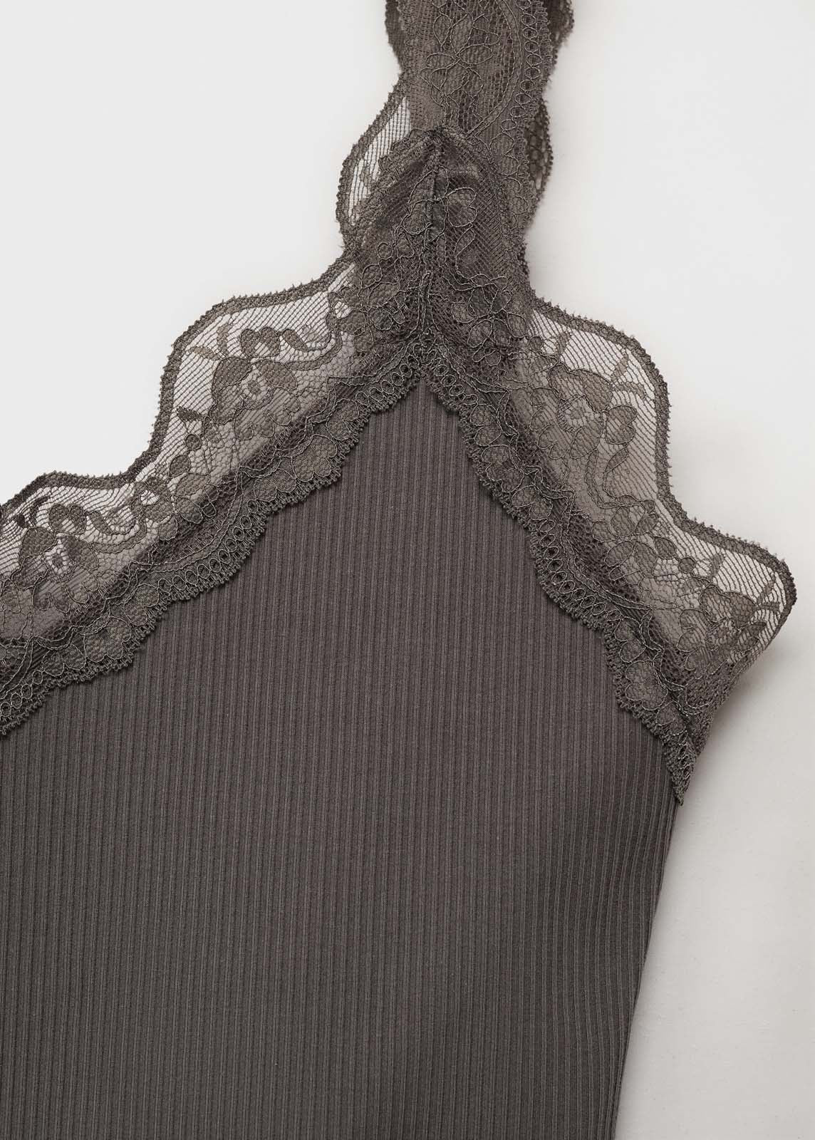 Tirantes anchos de encaje,Sin cierre,Detalle encaje,Cuello de pico,Sin mangas,Tejido de algodón,Diseño entallado