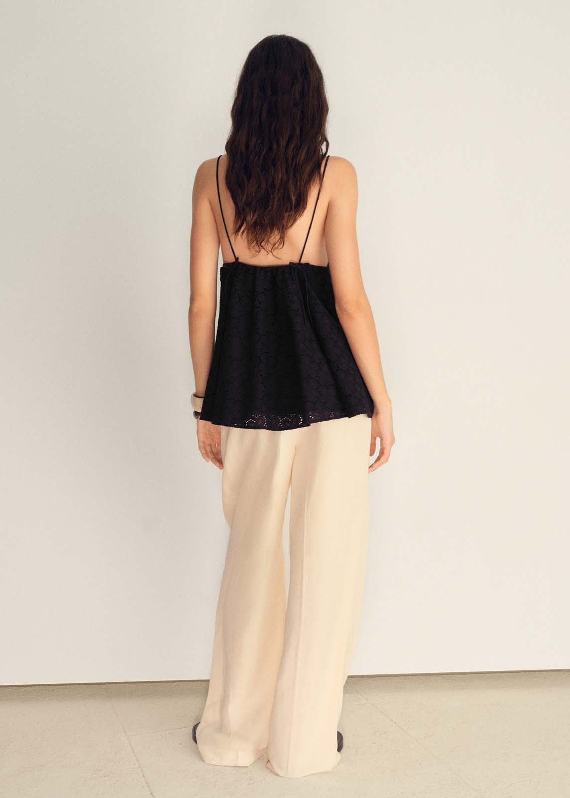 Tirantes finos,Sin cierre,Diseño recto,Cuello de pico,Lazos decorativos en la parte posterior,Sin mangas,Tejido de algodón,Diseño bordado,Forro interior