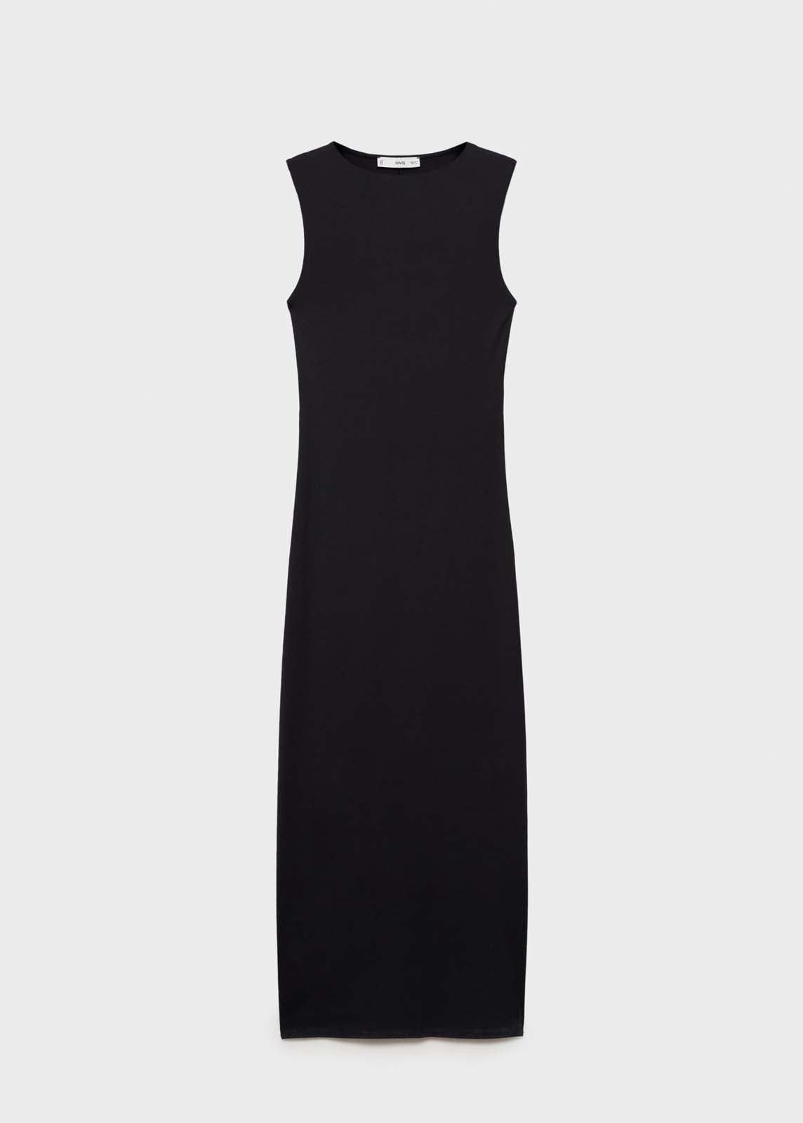 Detalle de abertura en la parte posterior,Tejido fluido,Sin cierre,Cuello redondo,Tirantes anchos,Diseño largo,Sin mangas,Diseño entallado