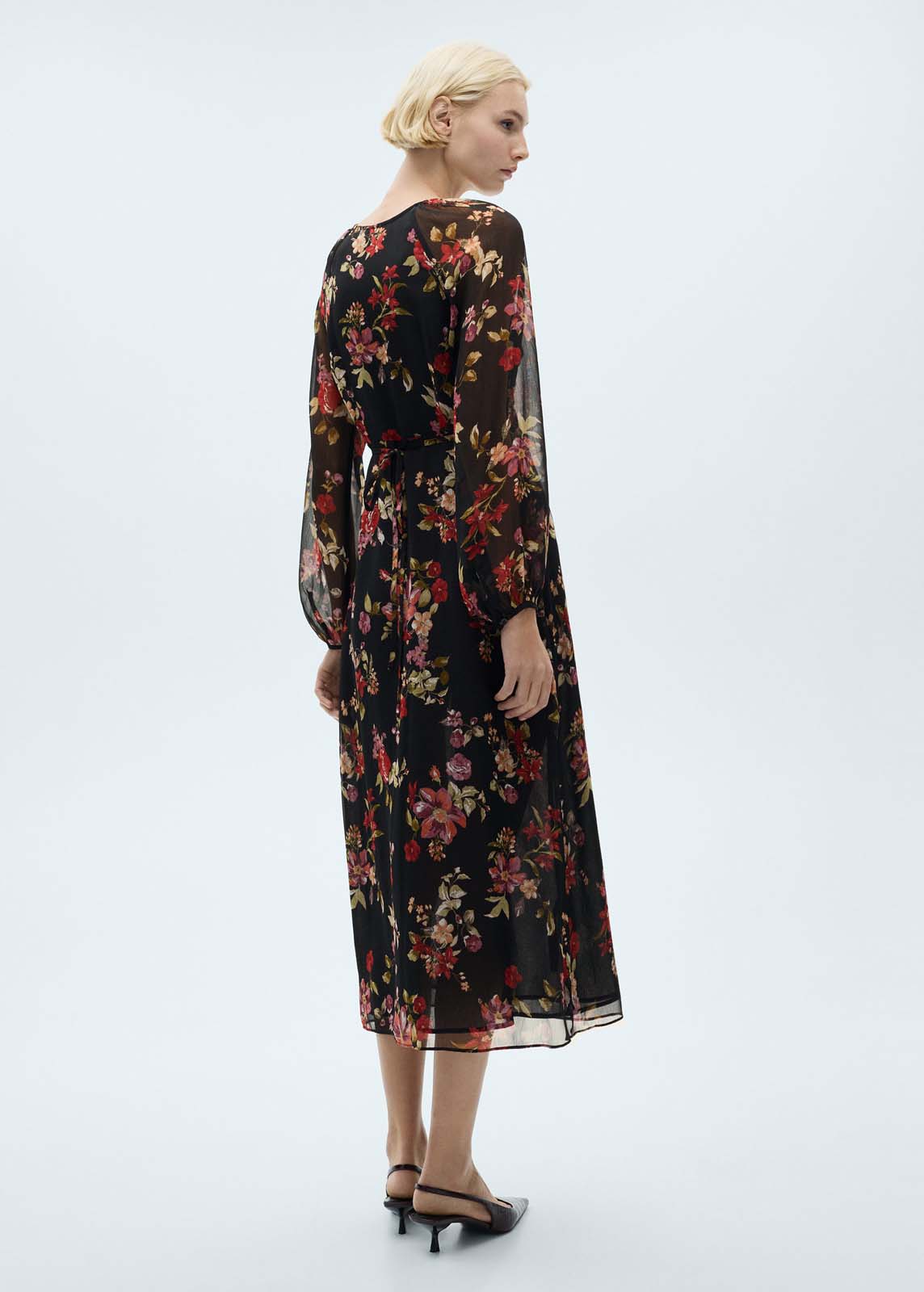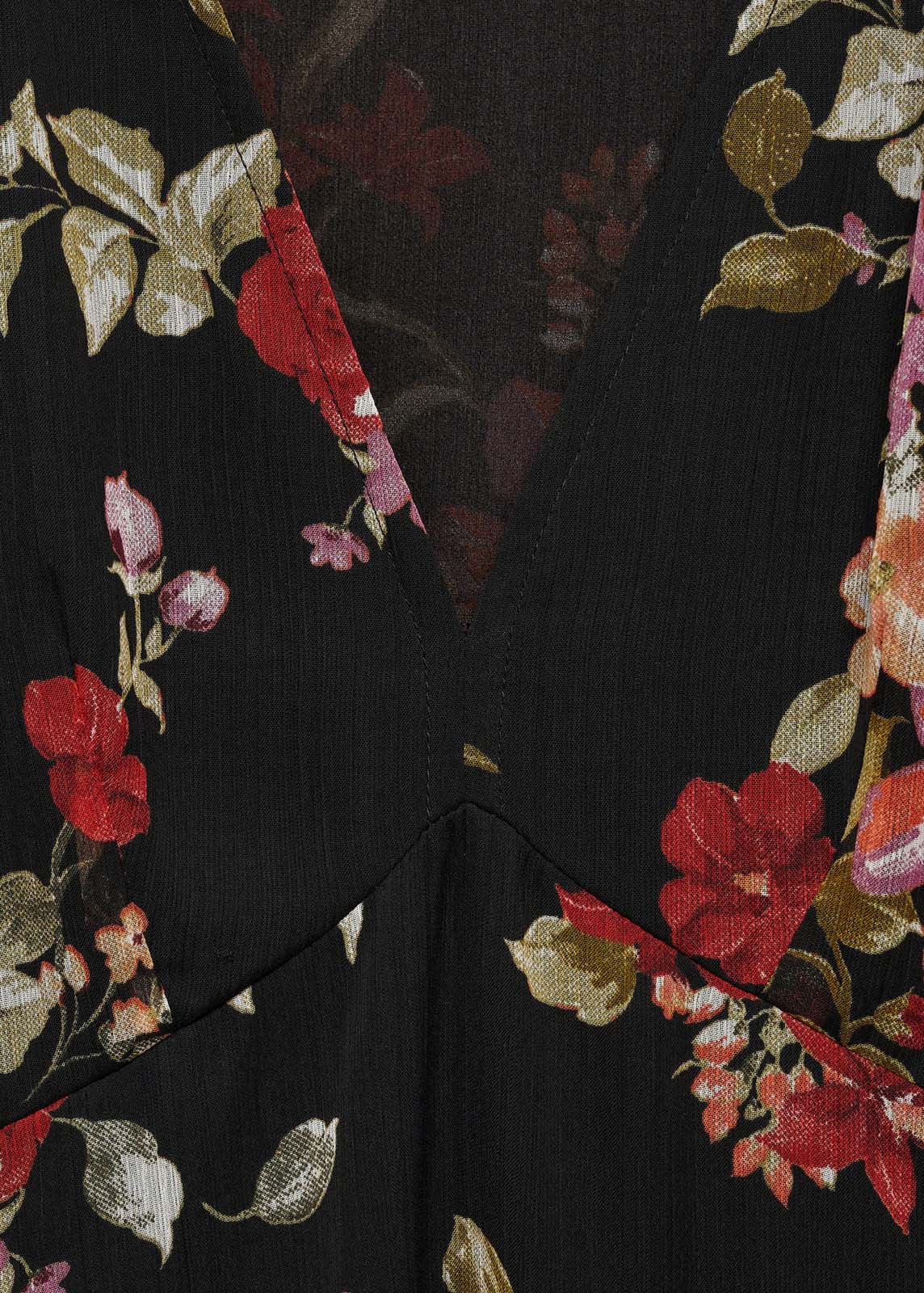 Tejido de gasa,Cuello pico,Manga larga abullonada,Diseño evasé,Disponible Plus,Diseño semitransparente,Estampado de flores,Diseño midi,Cierre de cremallera lateral,Forro interior