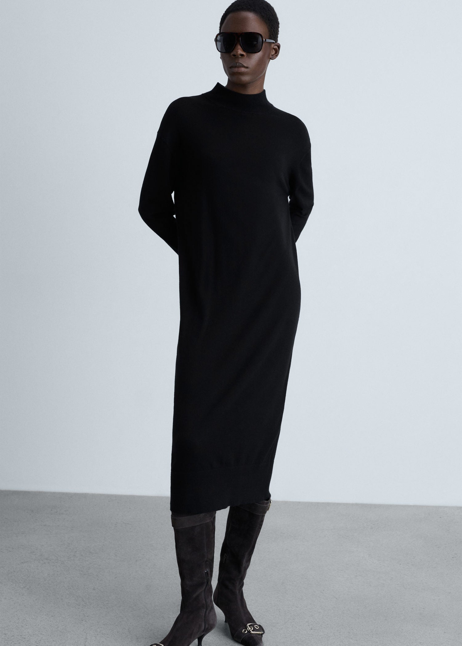 Tejido de punto fino,Sin cierre,Diseño recto,Sin forro interior,Cuello alto,Diseño midi,Diseño largo,Cuello perkins,Manga larga,Terminaciones en canalé