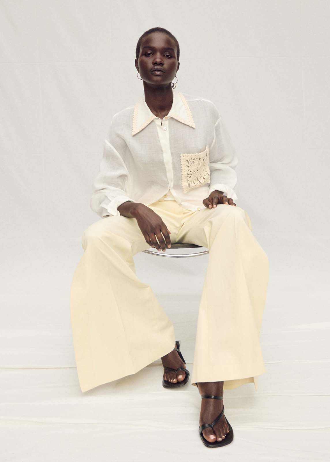 Detalles bordados,Cierre de botones en la parte delantera,Colección Selection,Bolsillo de parche en la parte delantera,Manga larga abotonada,Diseño recto,Cuello camisero,Bolsillo bordado,Tejido de ramio