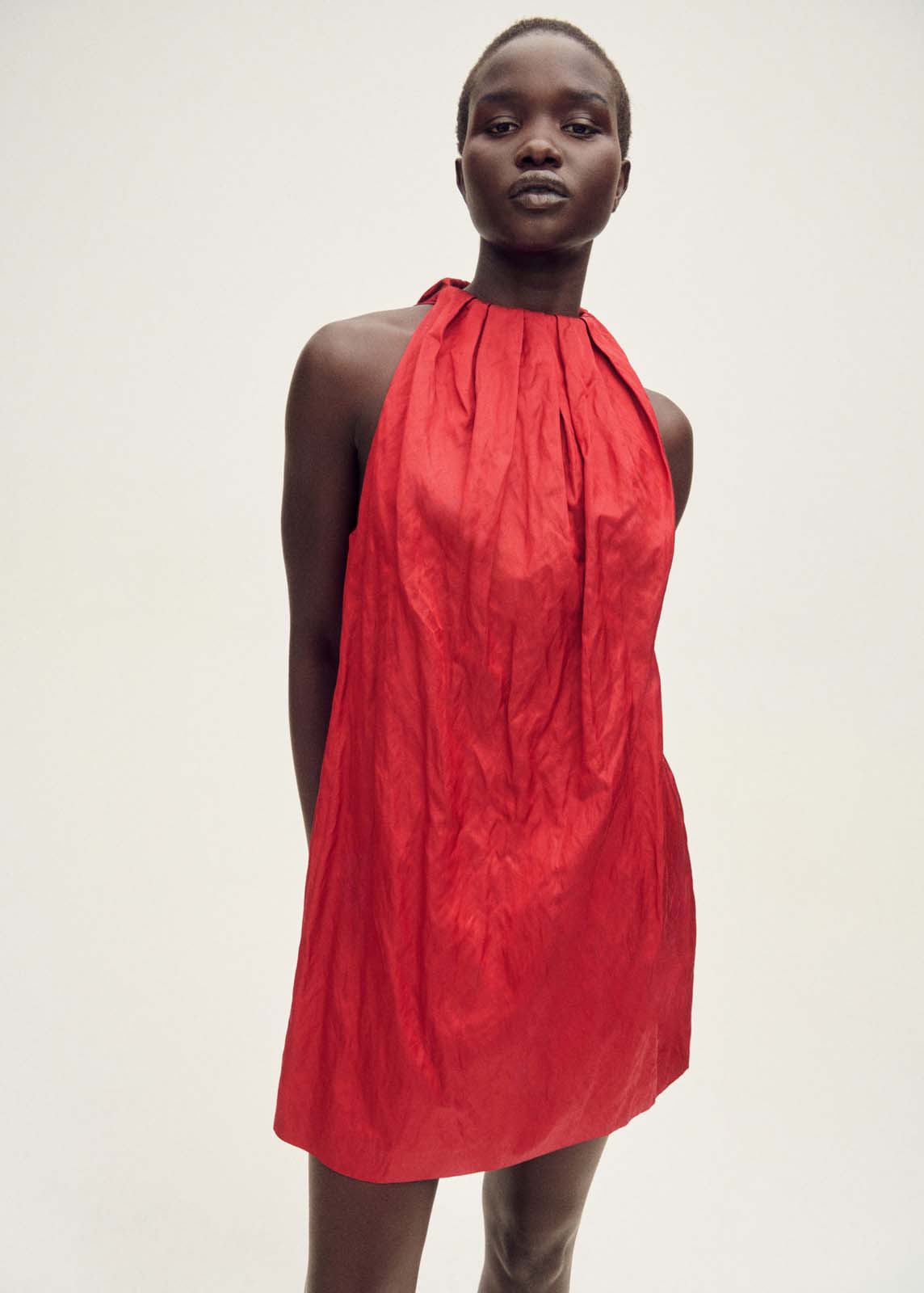 Colección Selection,Cierre de lazo en la parte posterior,Diseño corto,Diseño recto,Cuello fruncido,Sin mangas,Cuello halter,Tejido de algodón