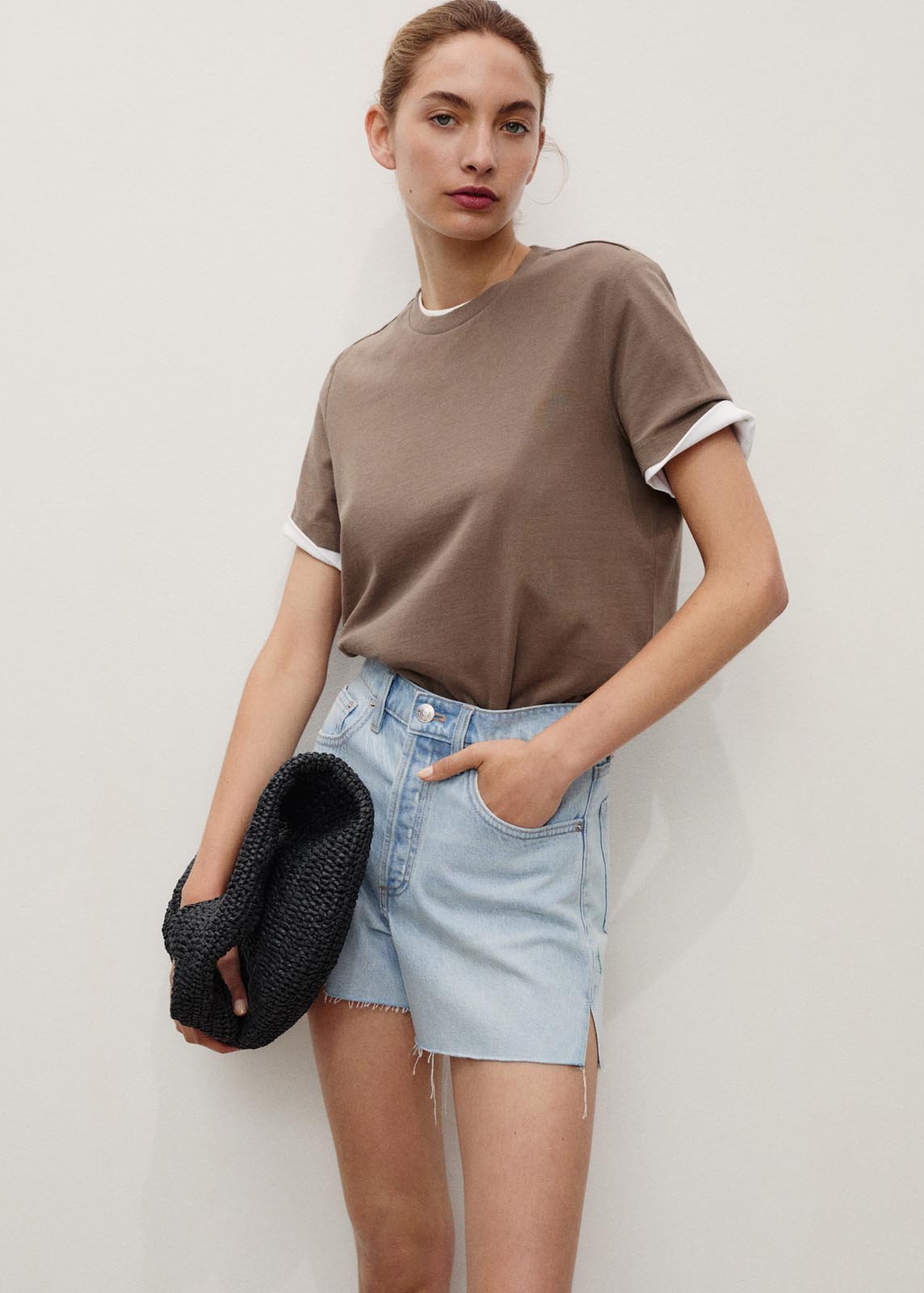 Cierre de botón y cremallera,Trabillas,Tiro medio,Diseño corto,Cinco bolsillos,Diseño recto,Bajo deshilachado,Tejido de algodón estilo tejano vaquero