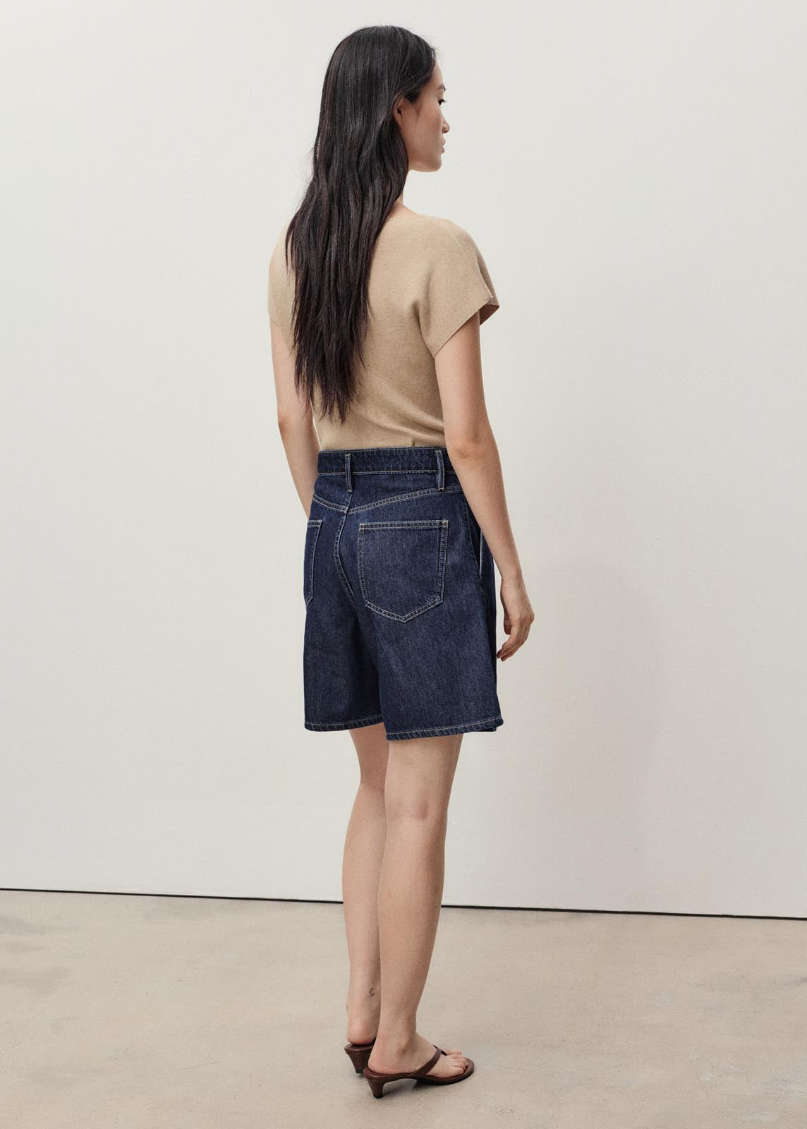 Cierre de cremallera y botón,Trabillas,Dos bolsillos en la parte posterior,Tiro medio,Cierre delantero de cremallera y botón,Detalle de pinzas,Diseño corto,Dos bolsillos laterales,Diseño recto,Tejido de algodón estilo tejano vaquero,Detalle de pinzas delanteras,Rinse wash