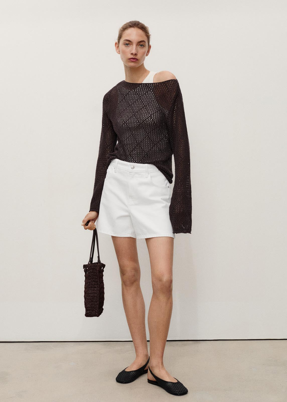 Cierre delantero de cremallera y botón,Diseño corto,Cinco bolsillos,Diseño recto,Tejido de algodón estilo tejano vaquero,Tiro alto