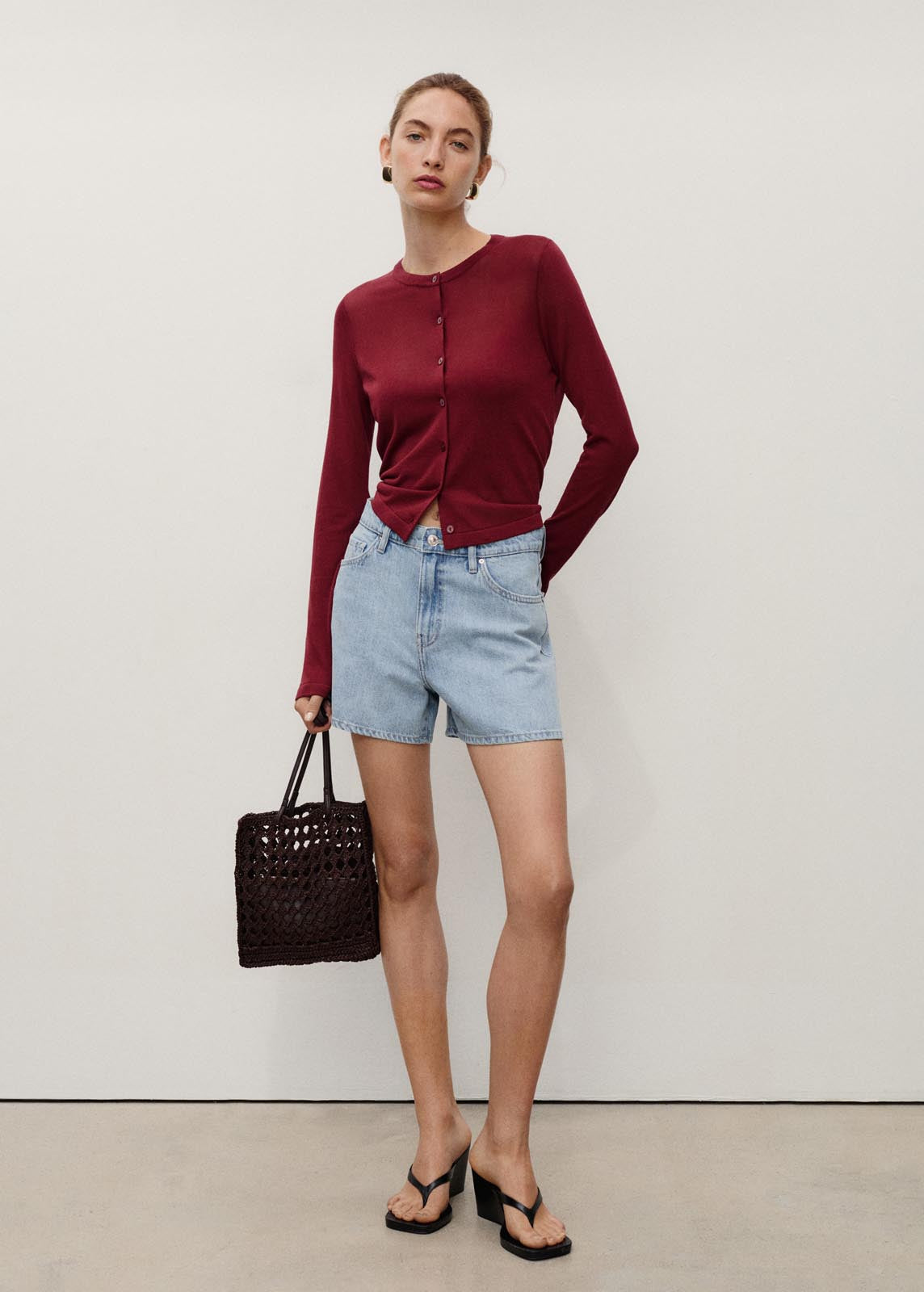 Trabillas,Cierre delantero de cremallera y botón,Diseño corto,Cinco bolsillos,Diseño recto,Tejido de algodón estilo tejano vaquero,Tiro alto