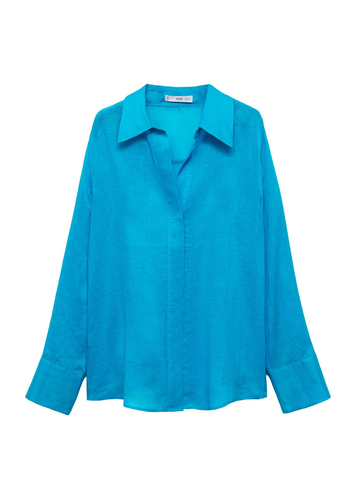Tejido 100% ramio,Regular fit,Manga larga con puños abotonados,Diseño recto,Cuello camisero,Cierre delantero con botones