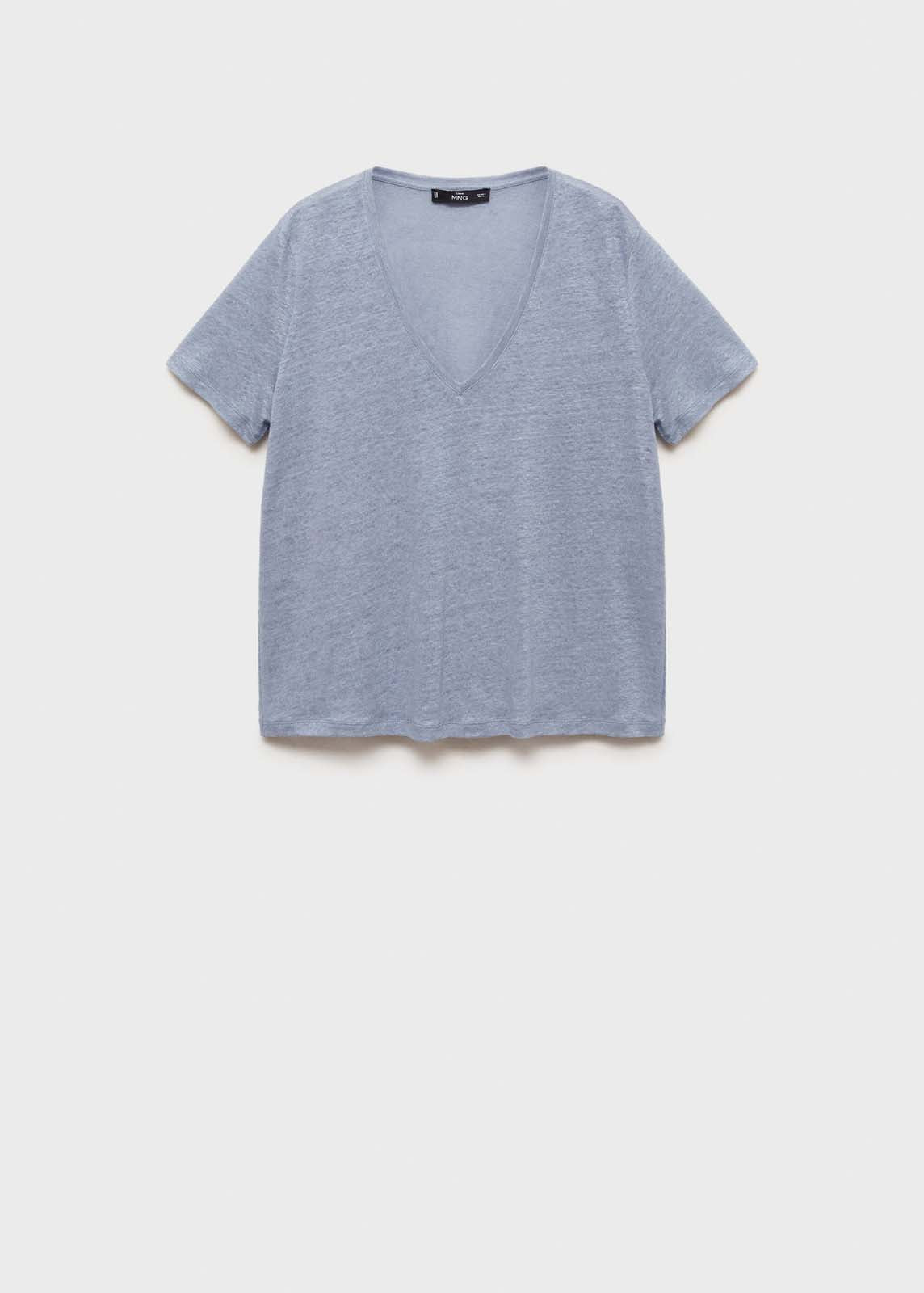 Manga corta,Sin cierre,Tejido 100% de lino,Disponible Plus,Diseño recto,Cuello de pico