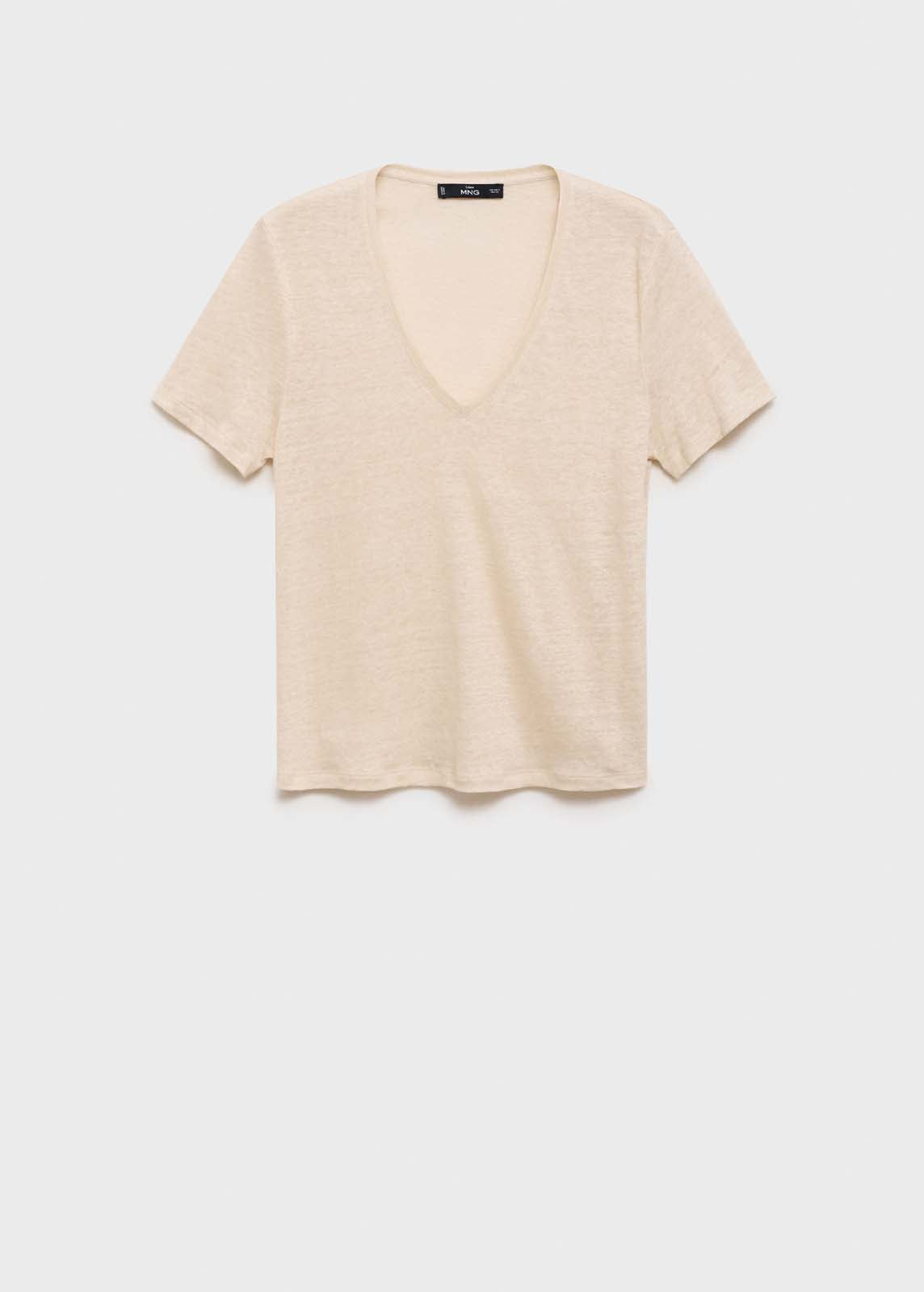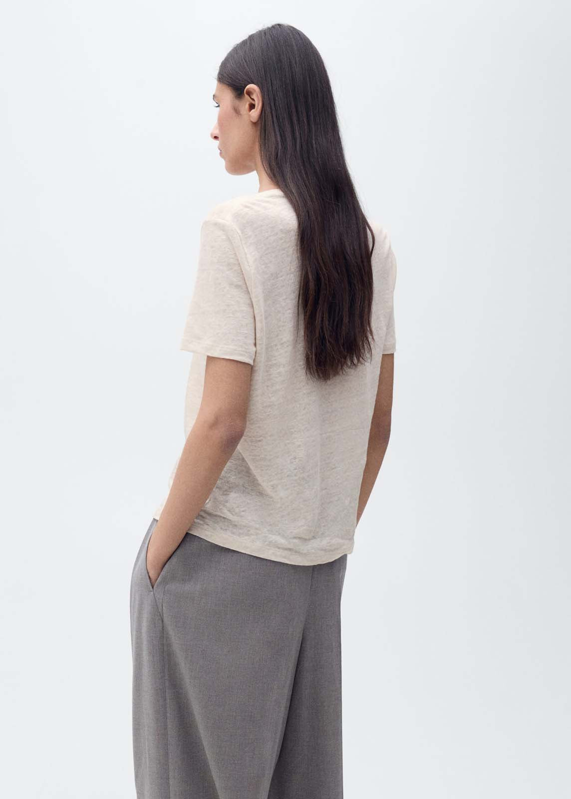 Manga corta,Sin cierre,Tejido 100% de lino,Disponible Plus,Diseño recto,Cuello de pico